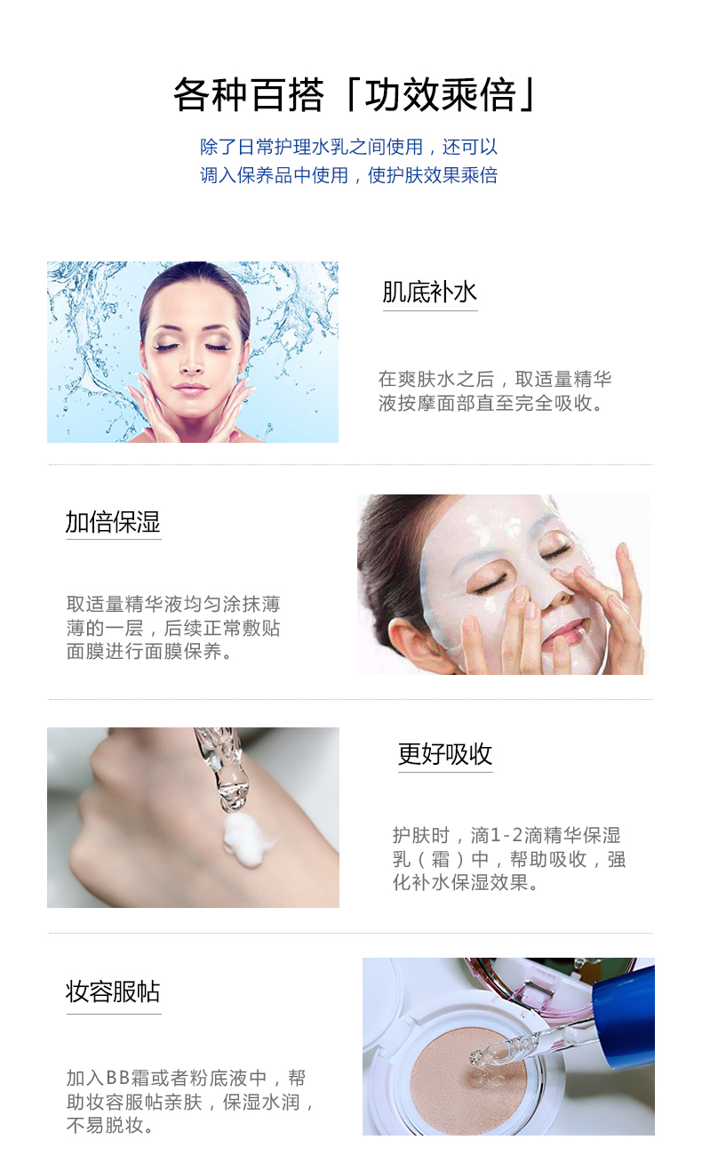 十多年经典30ml玻尿酸特润精华液原液 小蓝瓶 精华液 面膜伴侣 百搭玻尿酸 用了水灵灵 是美容院批量采购和化妆师喜欢的高性价比打底精华