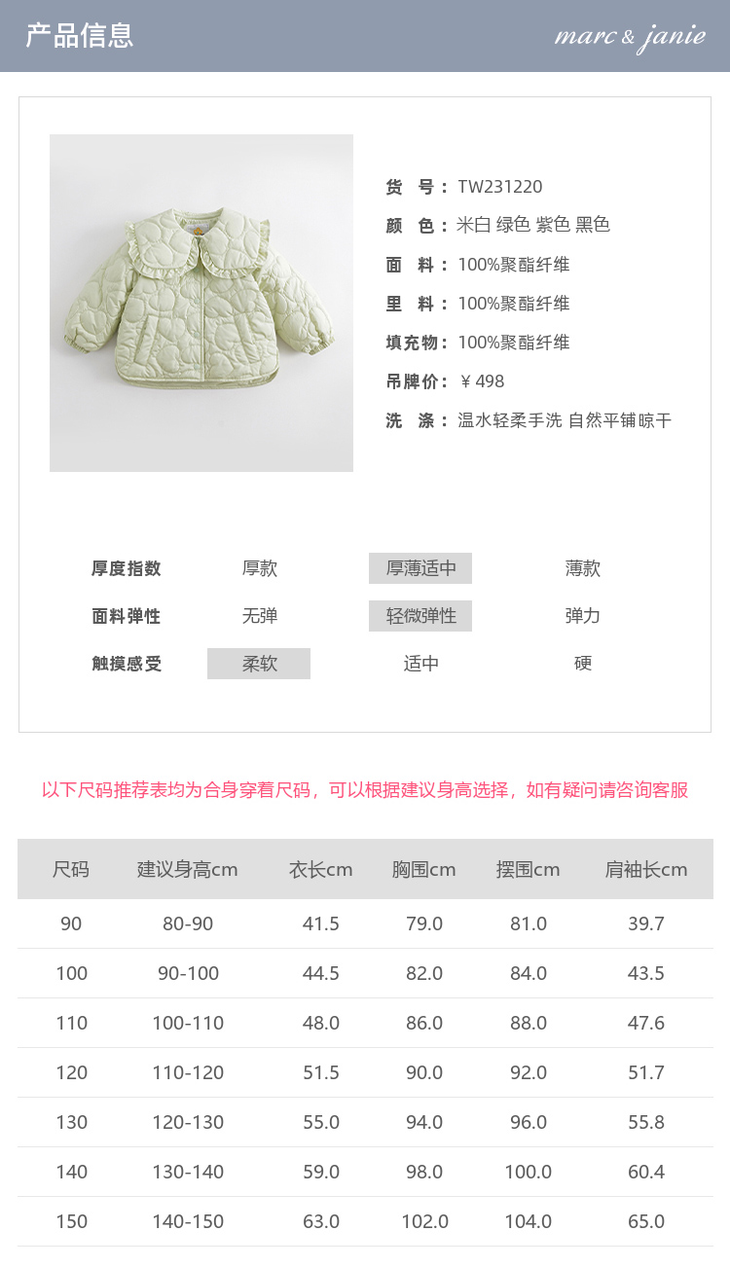 【三防】马克珍妮秋冬新款 女童花边娃娃领宽松外套231220