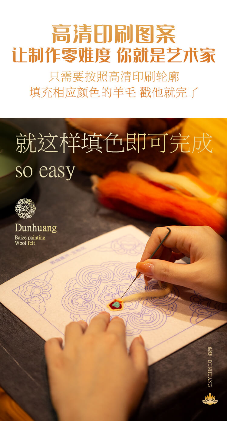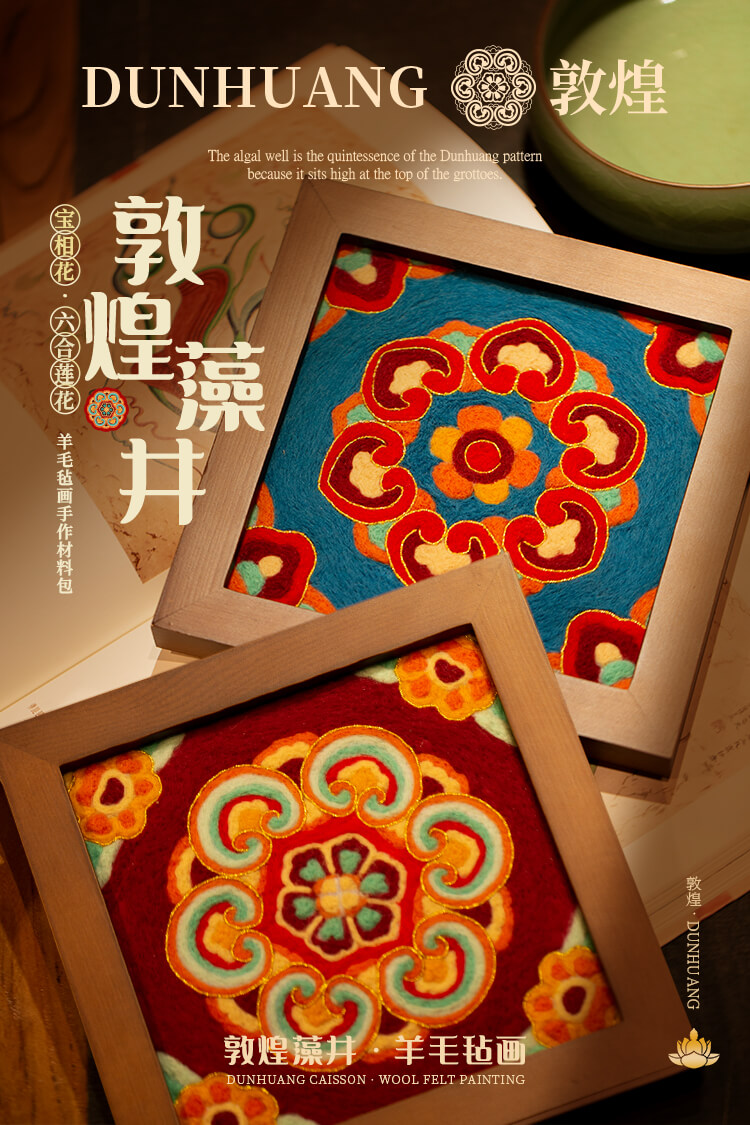 【敦煌主题团】敦煌藻井羊毛毡相框画 材料包