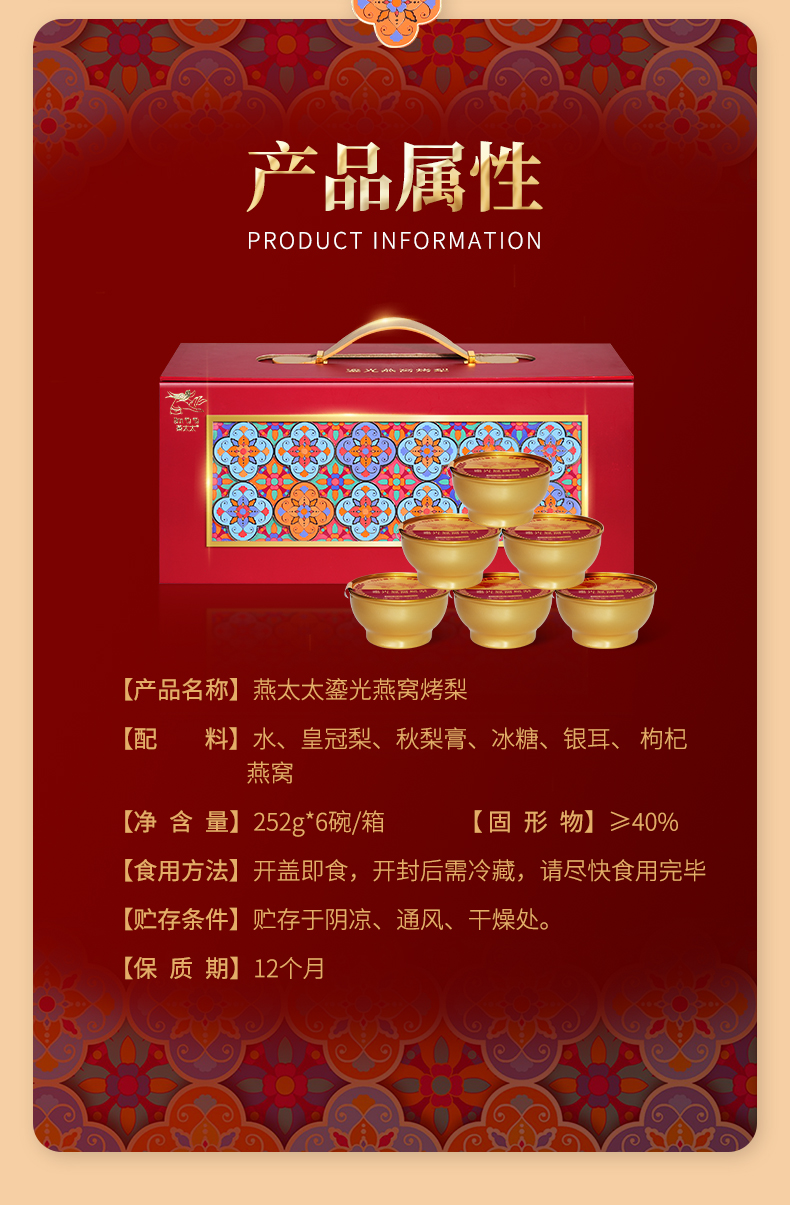 【发出后不支持拦截退货】燕太太 鎏光燕窝烤梨礼盒 1512g