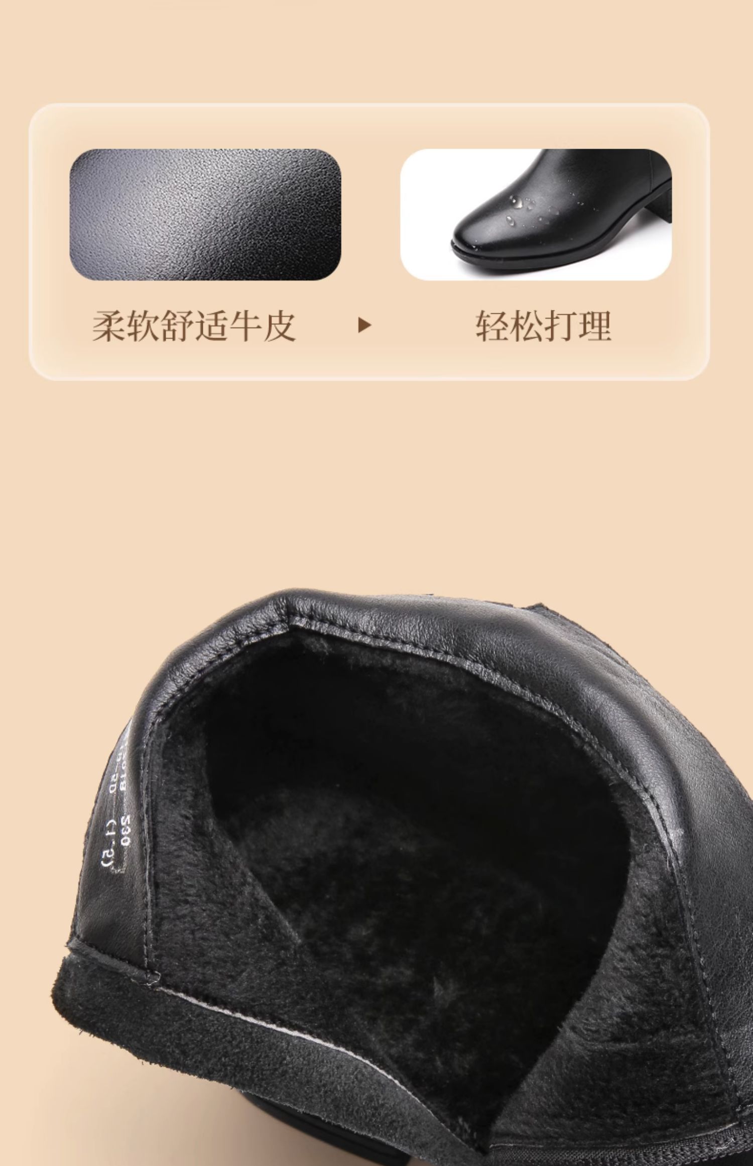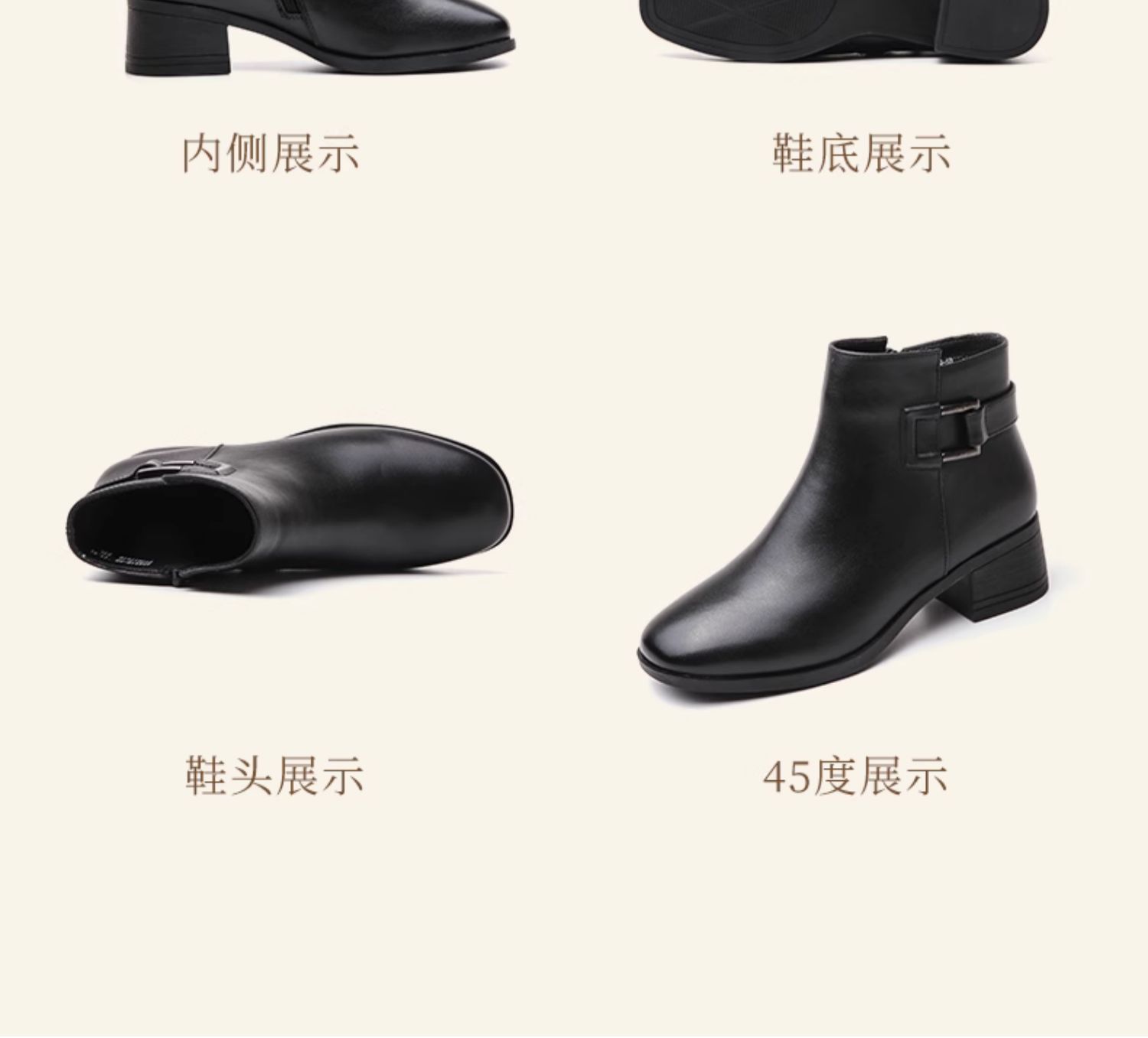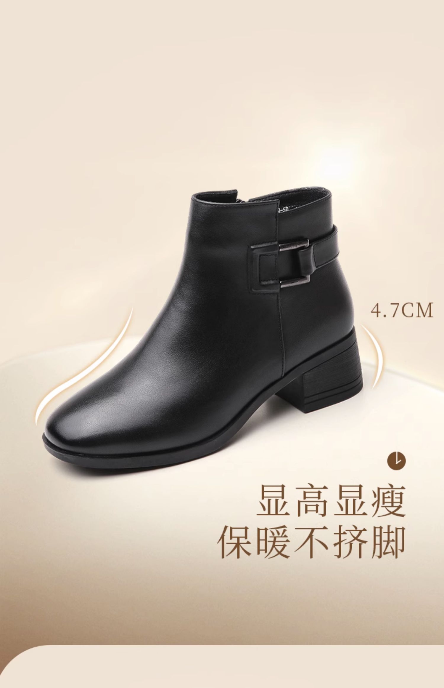 真皮加绒中年短靴女士2023新款秋冬季中老年中跟妈妈皮鞋大码棉鞋23M519-5D