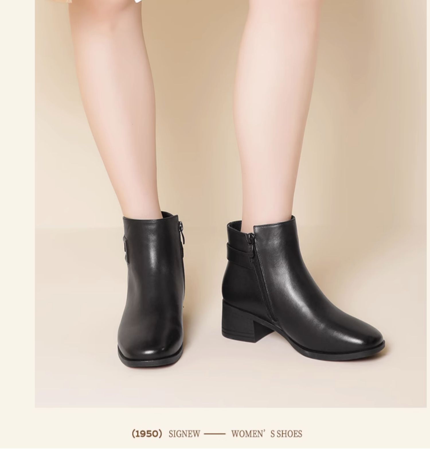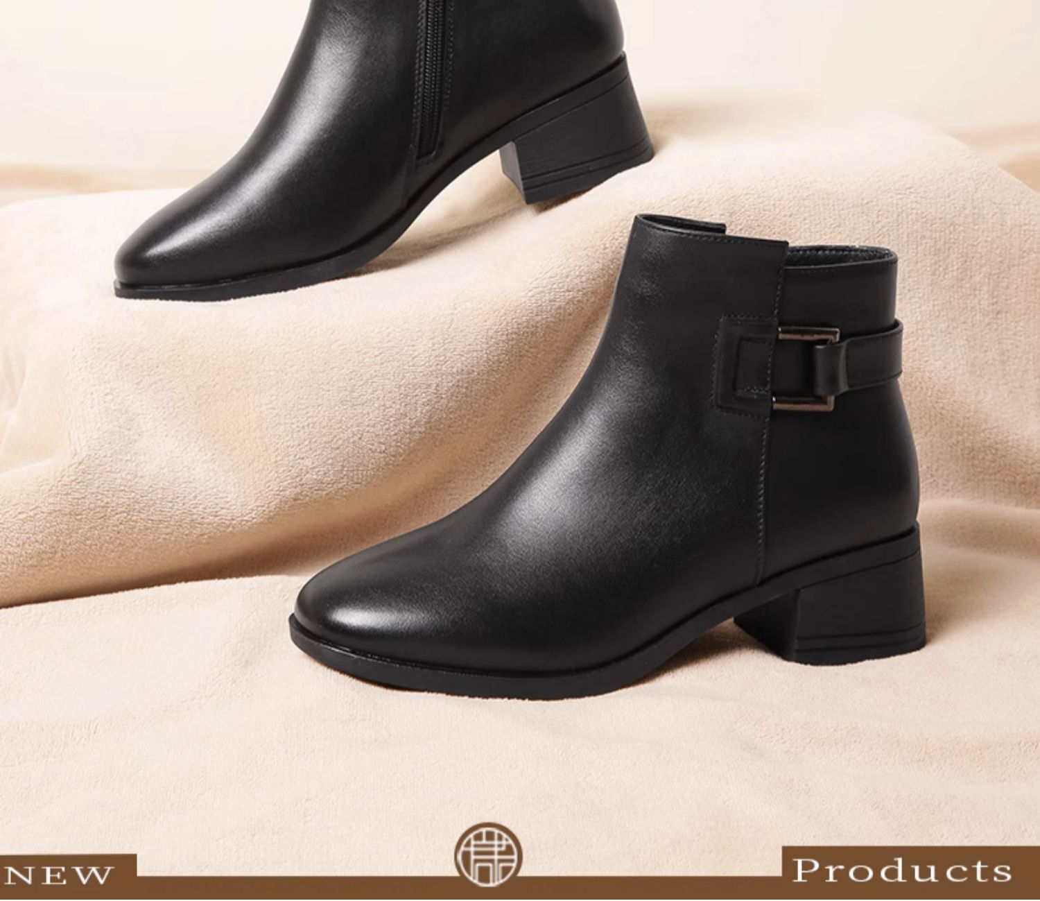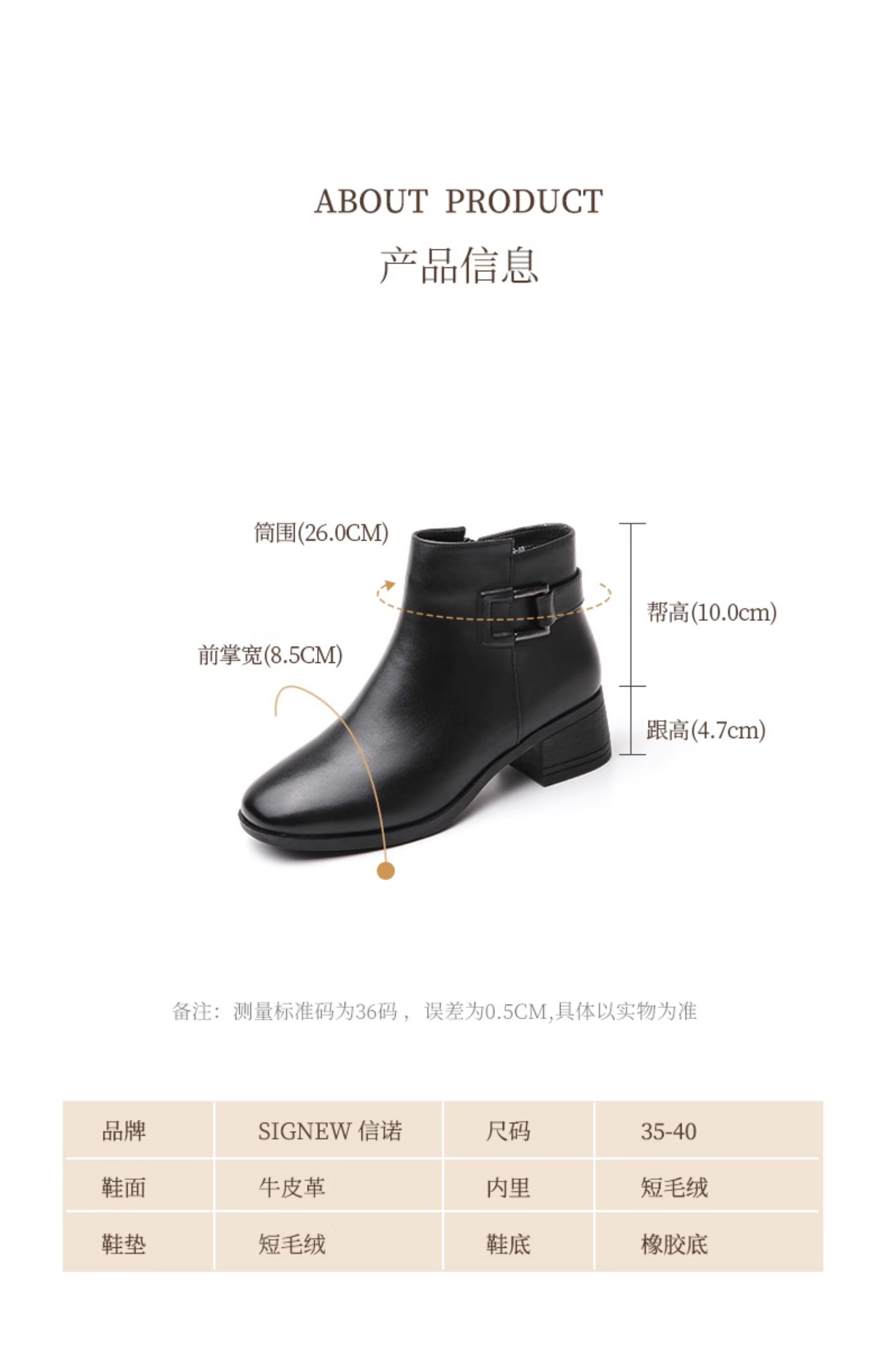 真皮加绒中年短靴女士2023新款秋冬季中老年中跟妈妈皮鞋大码棉鞋23M519-5D