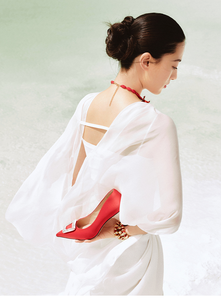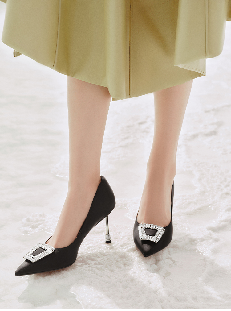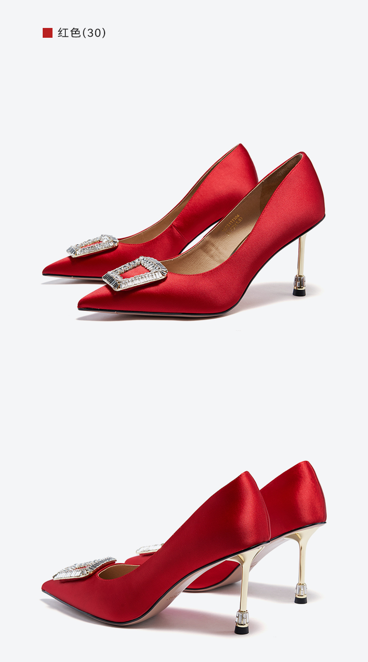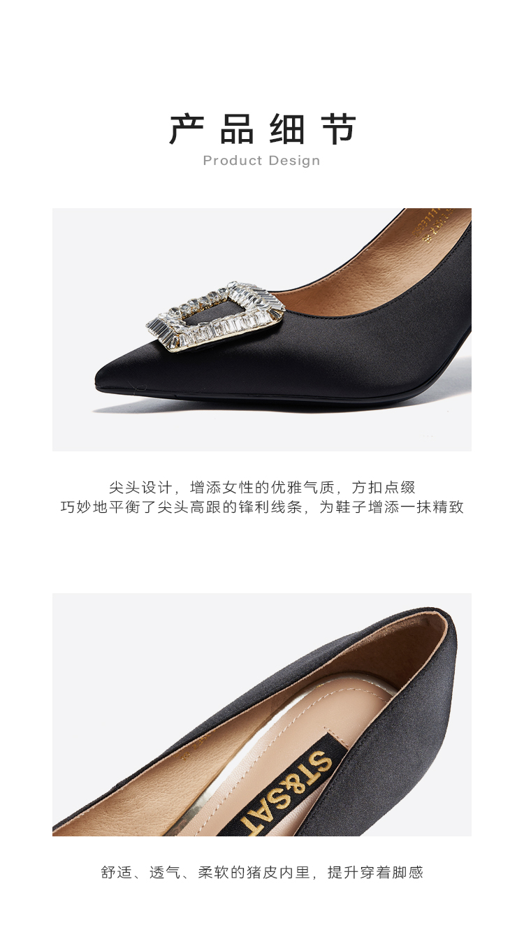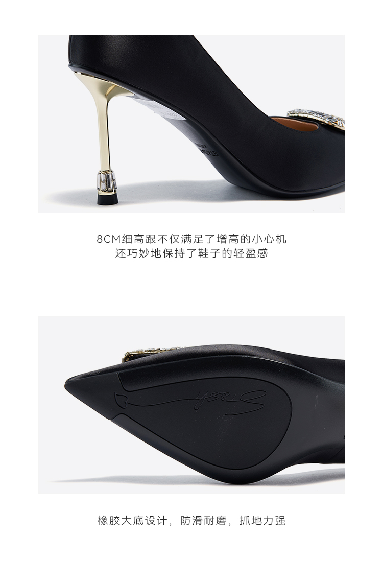 星期六优雅尖头水晶方扣细高跟SSC3111106