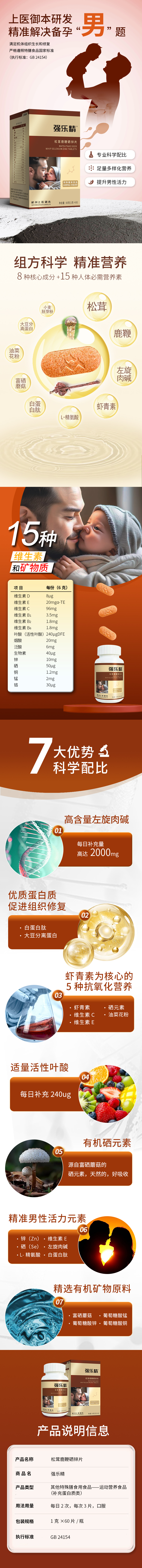 强乐精松茸鹿鞭硒锌片左旋肉碱 虾青素男士优育助孕