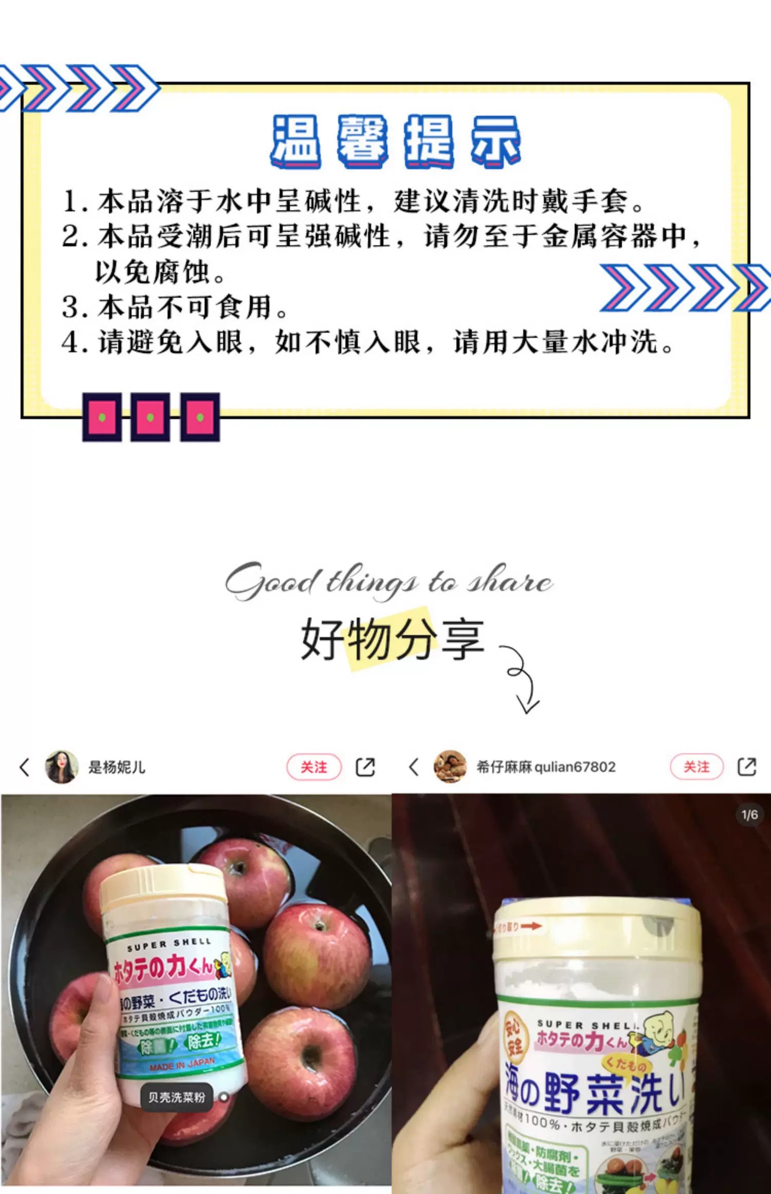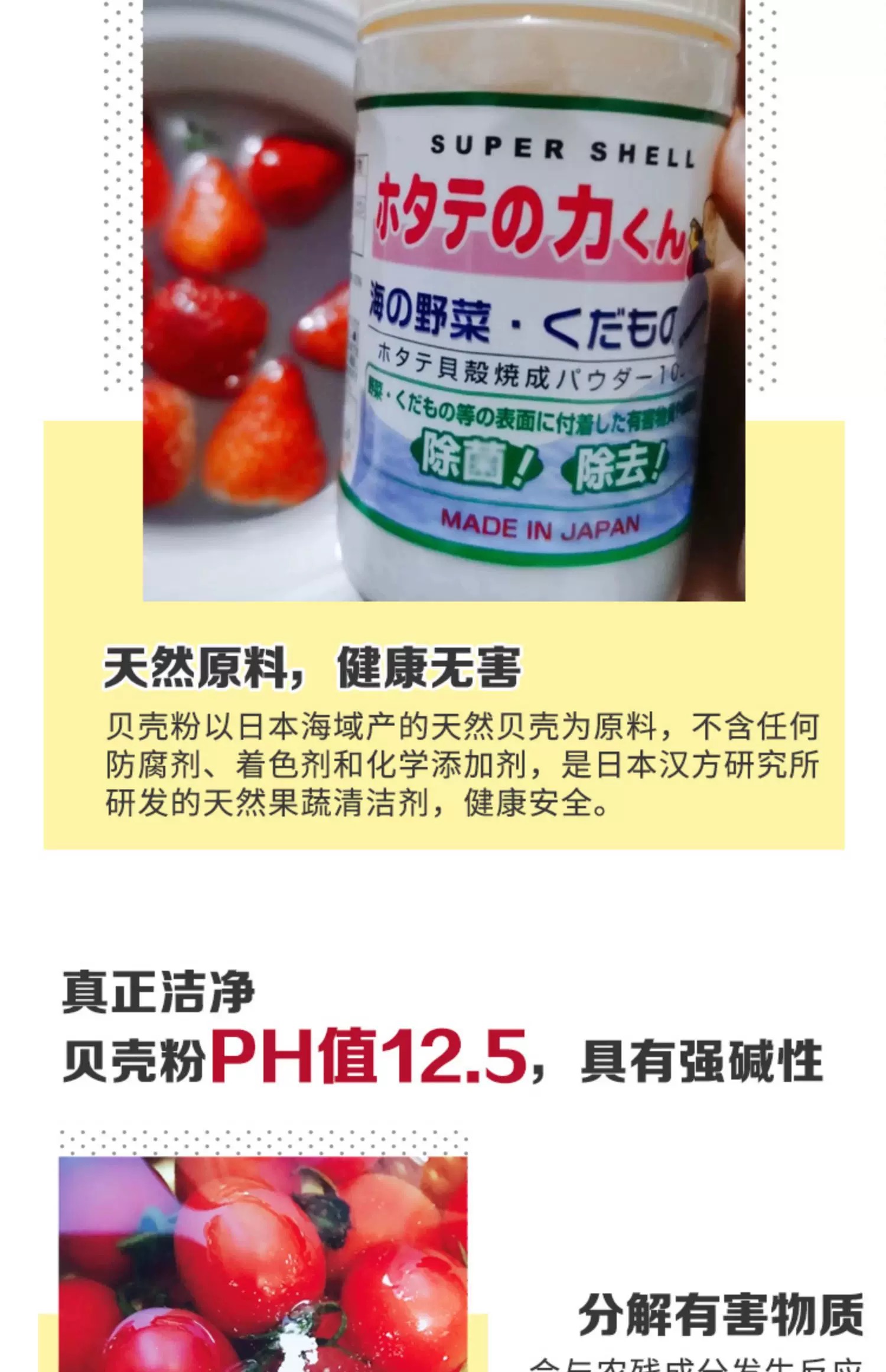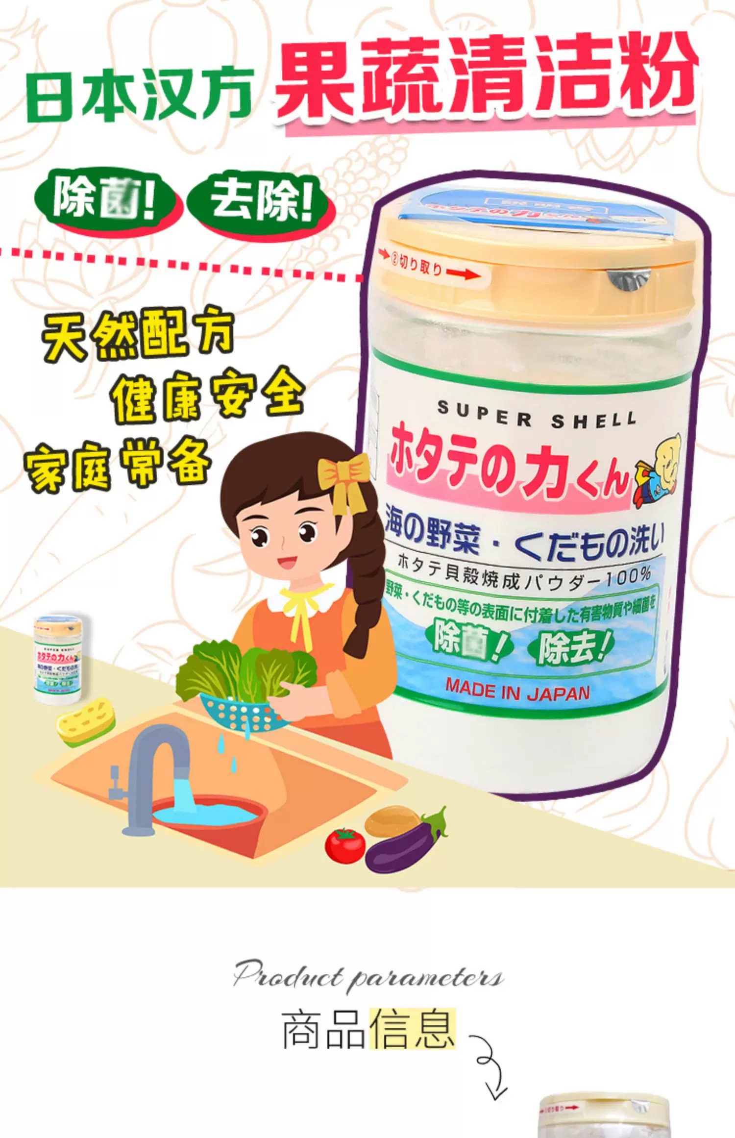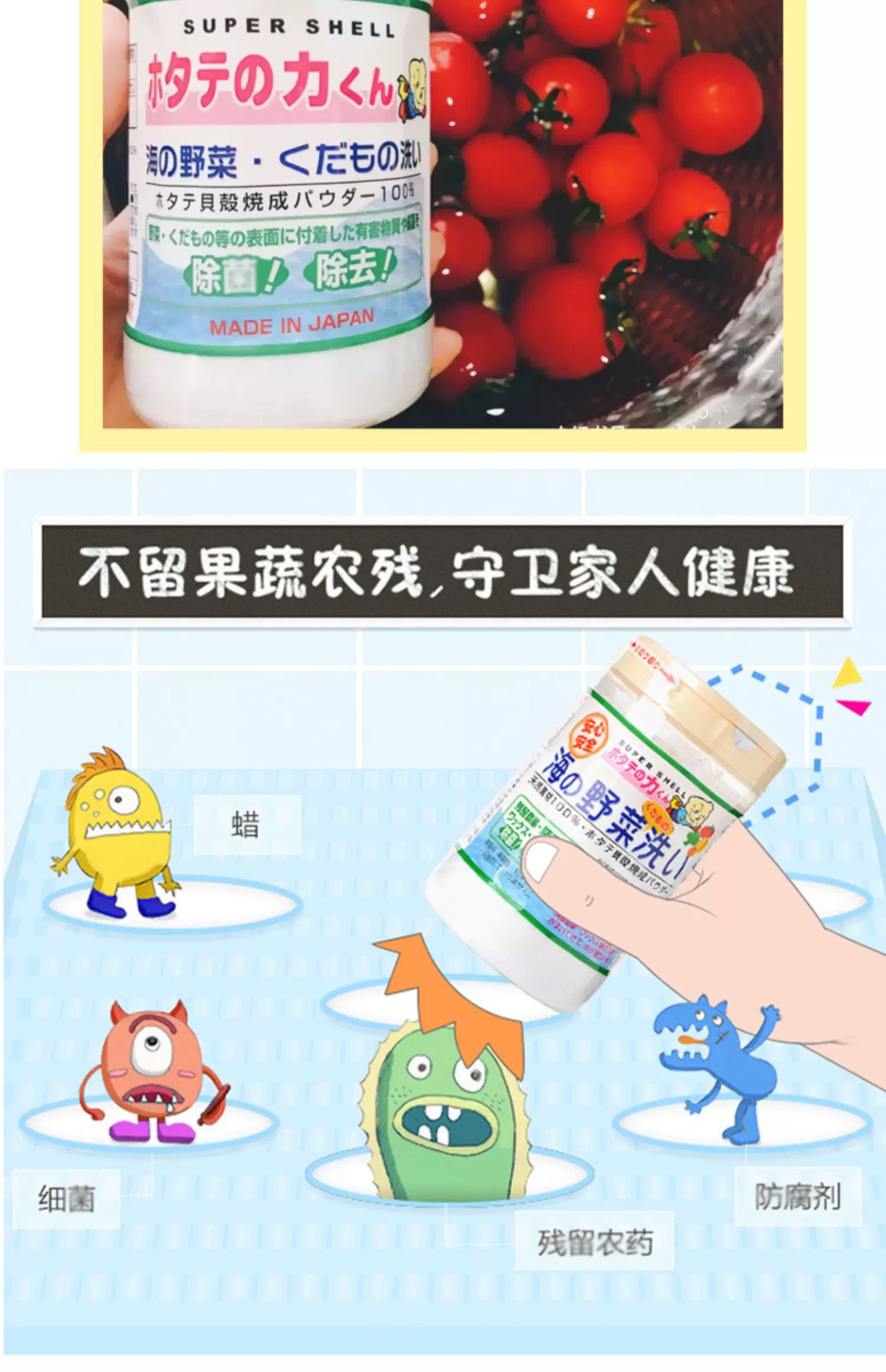 日本贝壳洗菜粉90g 汉方UYEKI果蔬野菜清洁粉贝壳粉去除农药残留母婴可用瓶装