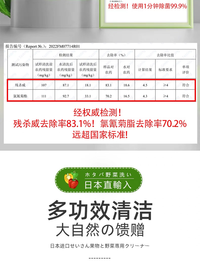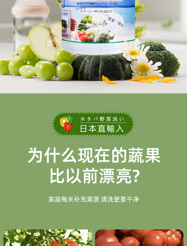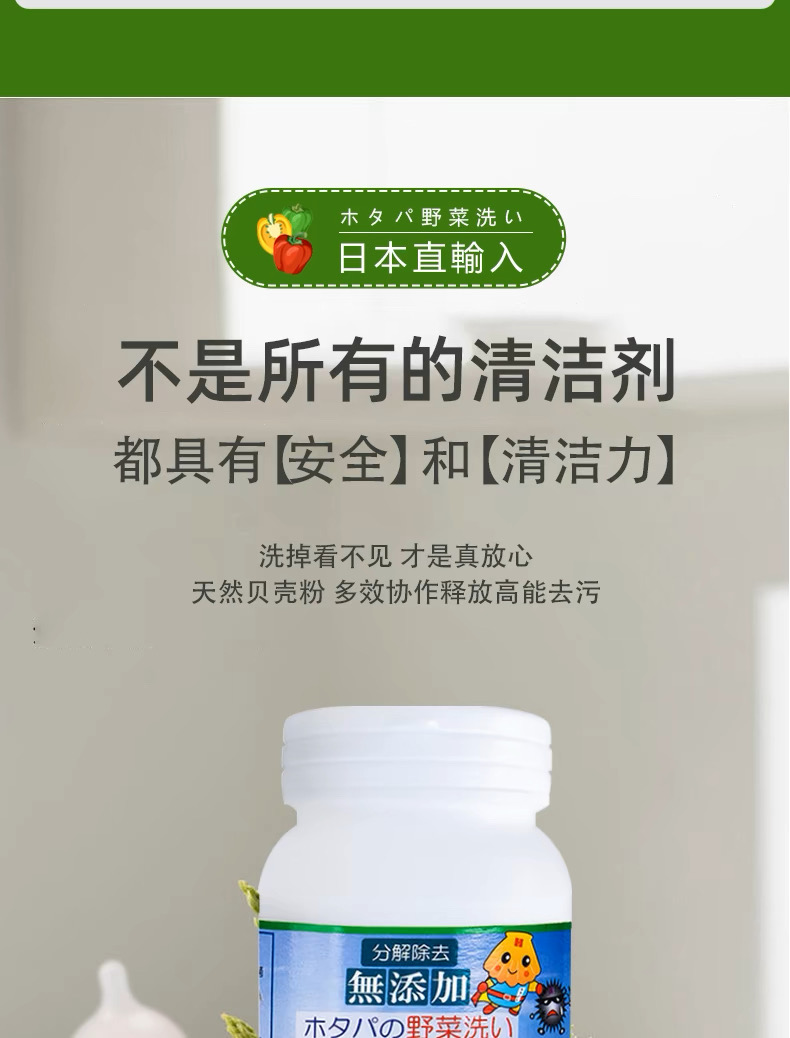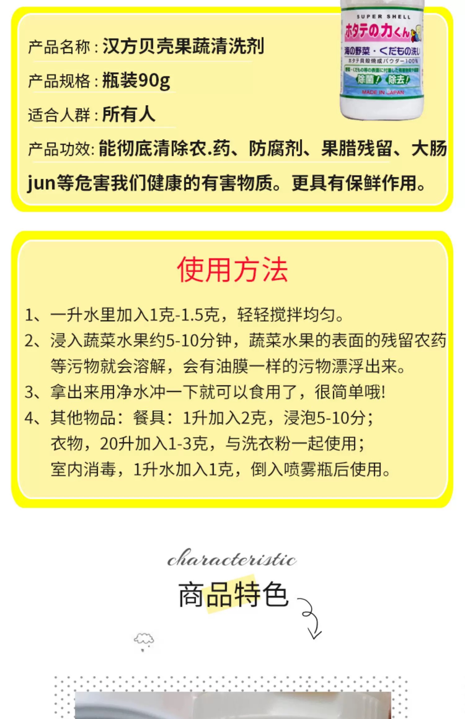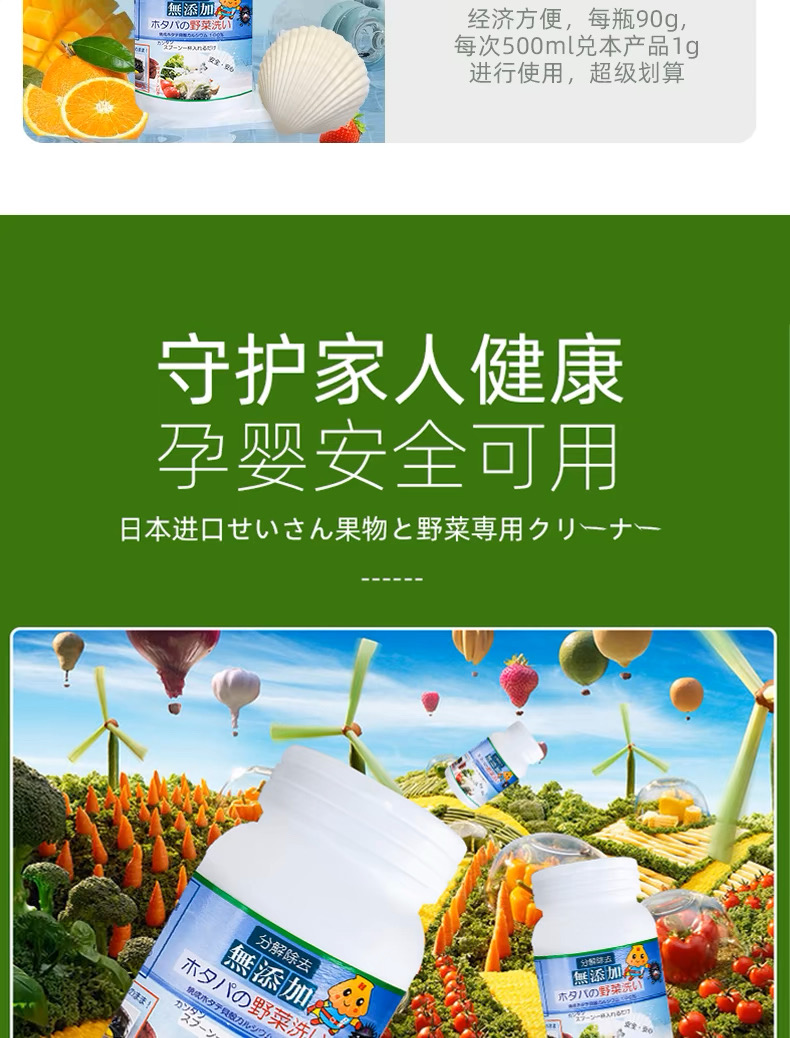 日本贝壳洗菜粉90g 汉方UYEKI果蔬野菜清洁粉贝壳粉去除农药残留母婴可用瓶装