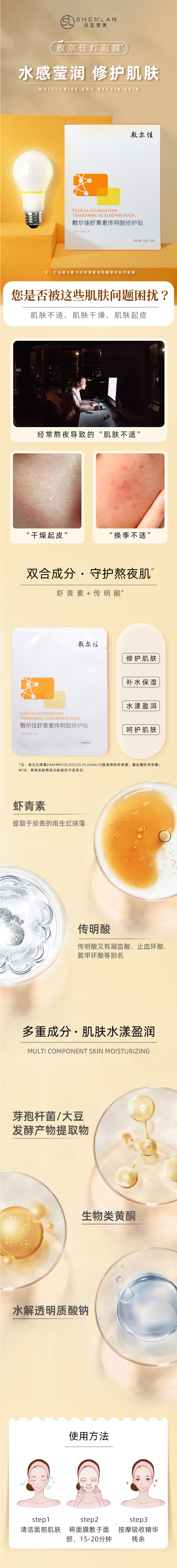 【深蓝心选】敷尔佳虾青素传明酸修护贴5片/盒(灯泡膜)