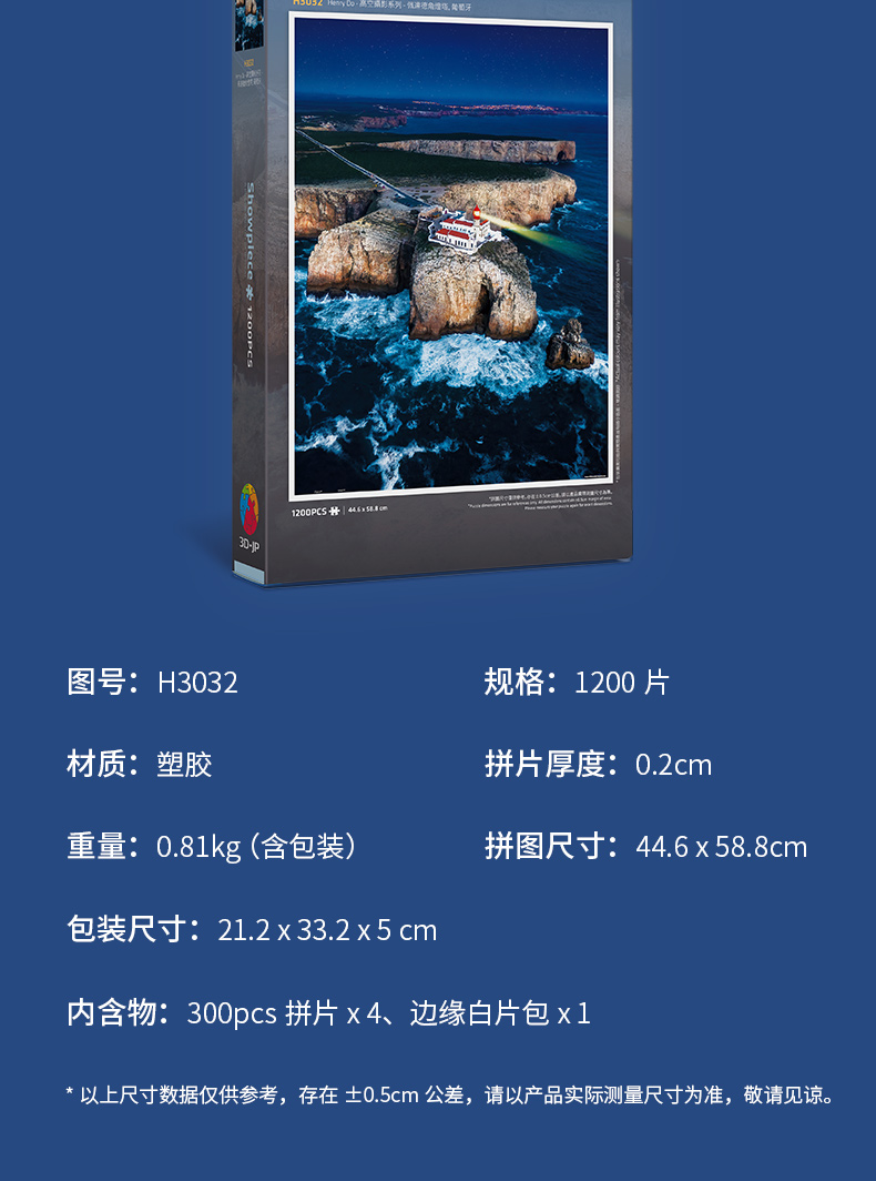 【折扣商品 不退不换】1200片平面拼图塑料拼图H3032 Henry Do-高空摄影系列-佩嗒德角灯塔, 葡萄牙