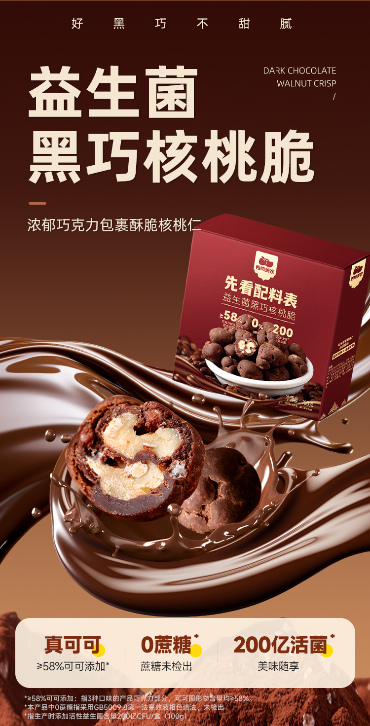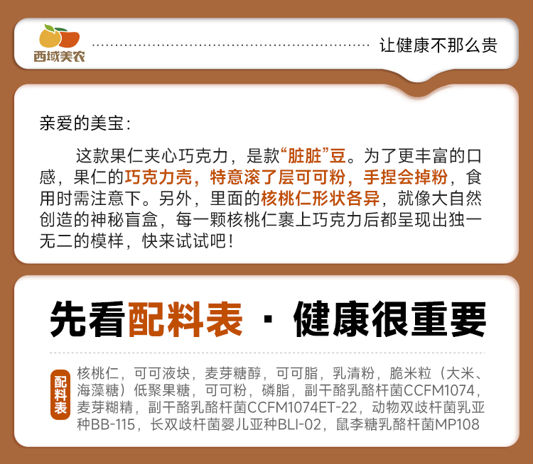 西域美农 益生菌黑巧核桃脆100g 香醇美味 健康轻负担 48小时发货