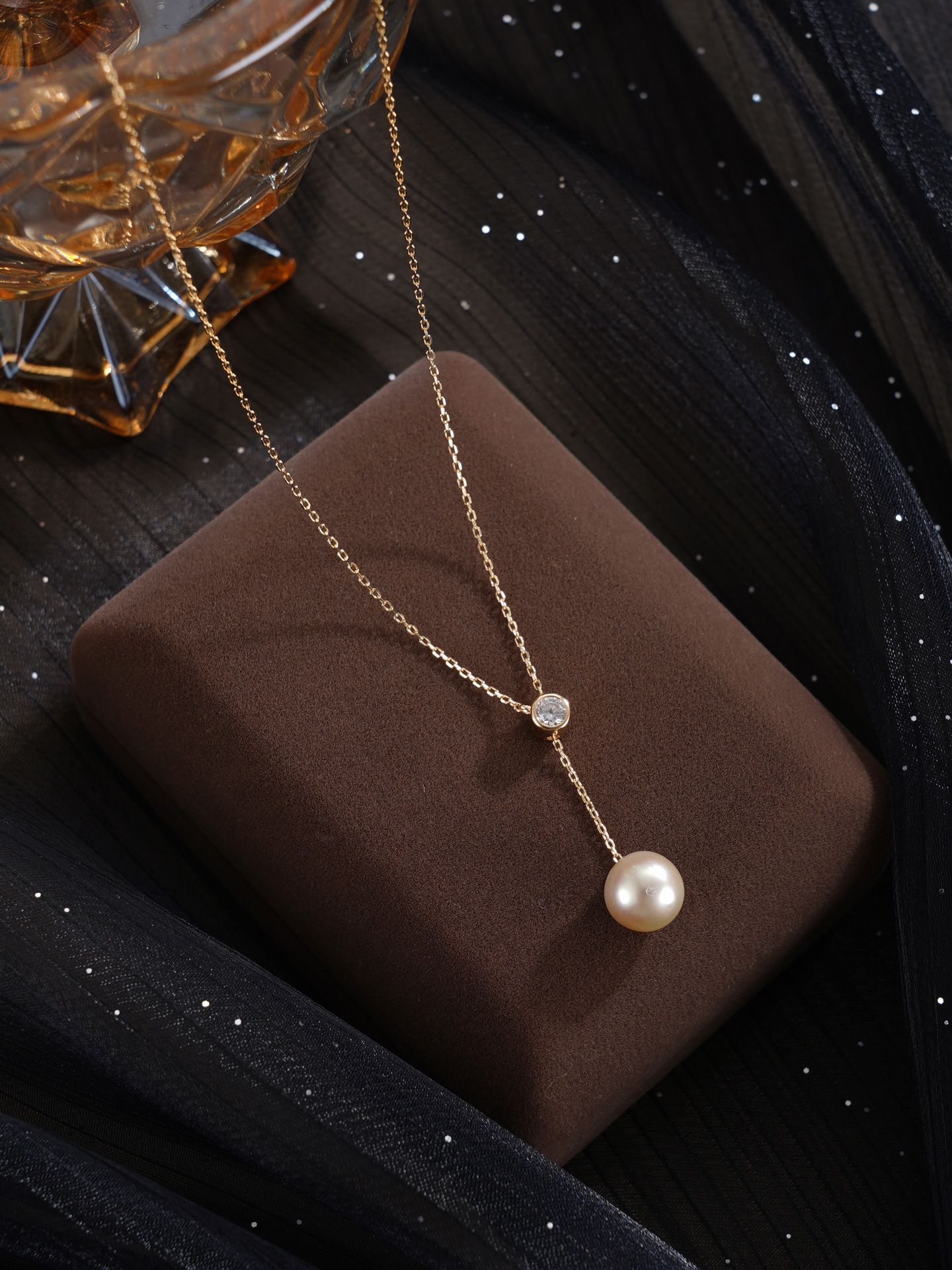 子佩集【暮光之遇】银S925珍珠惜王妃套链【HJYTL012】9.5mm珠镀金星点金色珠吊球2601