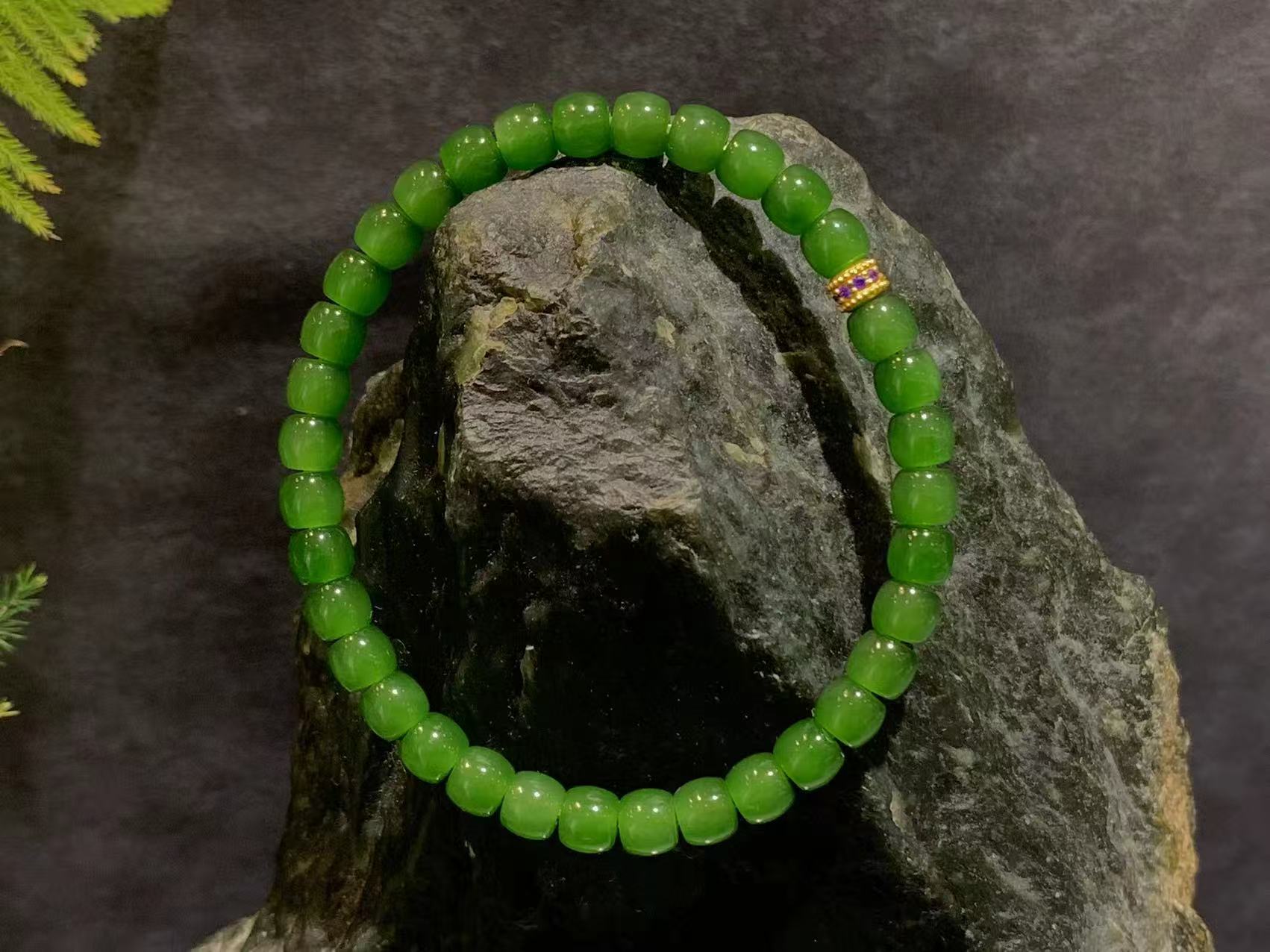 【御珠宫坊】新疆黑羊洞金镶碧玉戒指