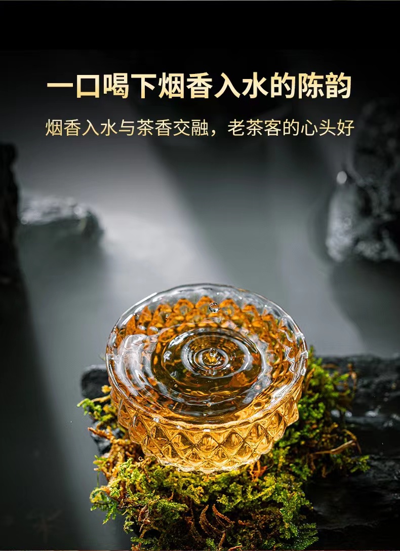 孔雀壹号,饼形圆润饱满,条索肥硕,松紧适度,芽毫显露;汤色橙黄,油润透亮;烟香细浓、陈韵纯正,交互融入茶汤,杯底甜蜜香持久;滋味酽厚,微苦即化,回甘生津张弛有力,喉韵深邃、持久,后韵甜、蜜香显;叶底鲜活,柔嫩舒展。