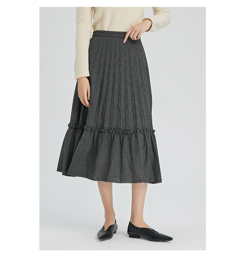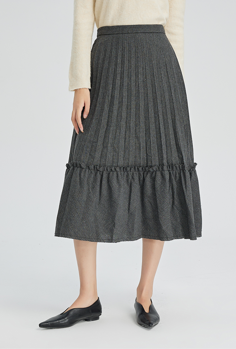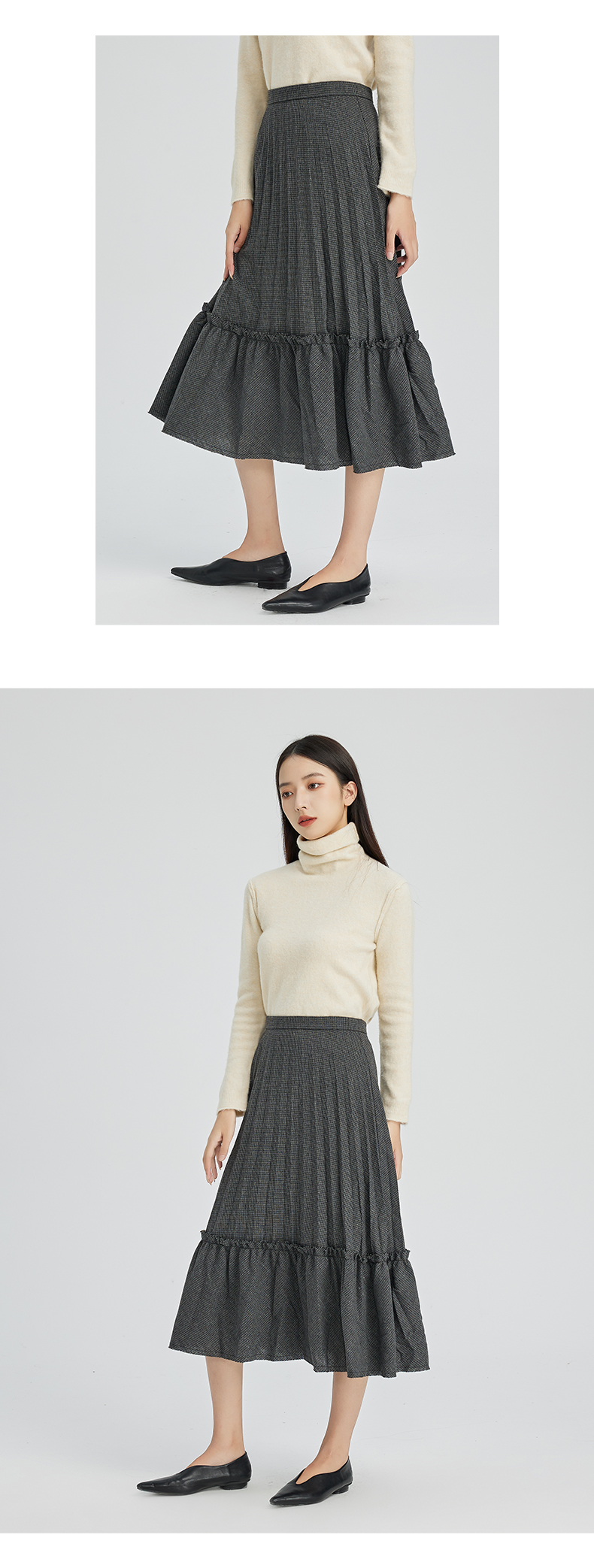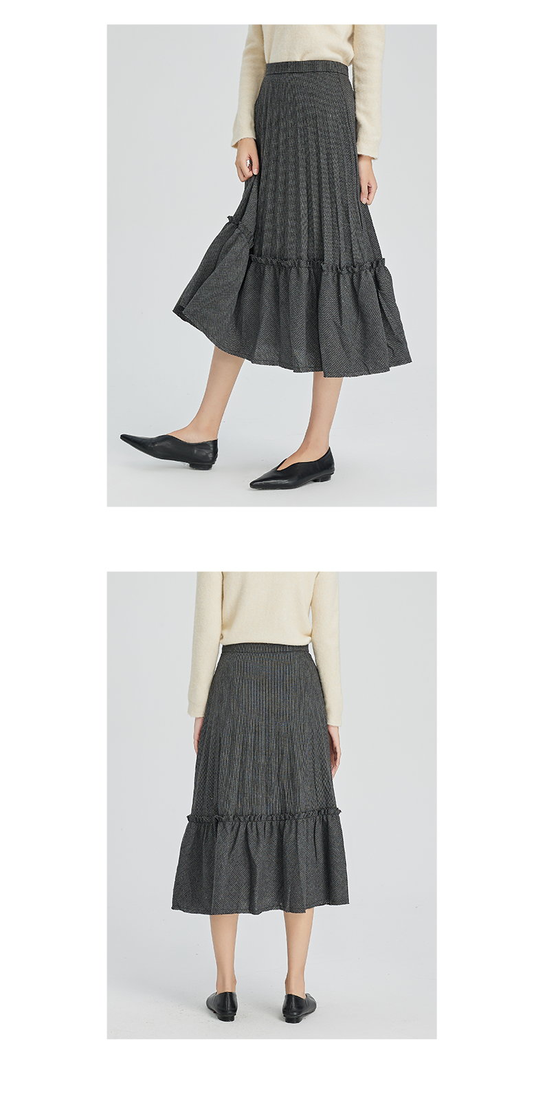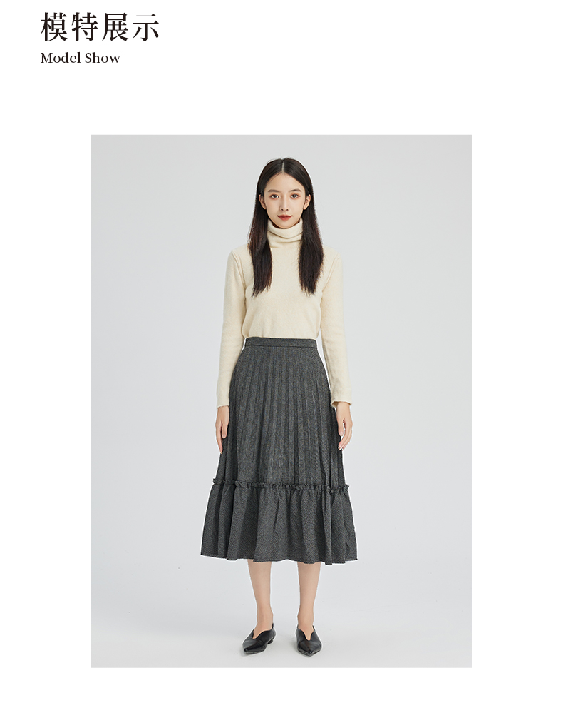 NUTS复古气质百搭松紧高腰显瘦百褶长款半身裙女241063296B