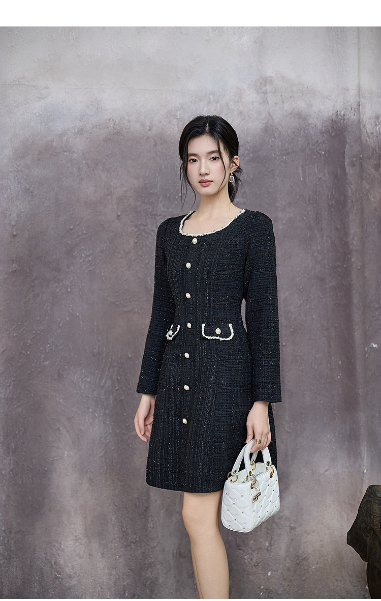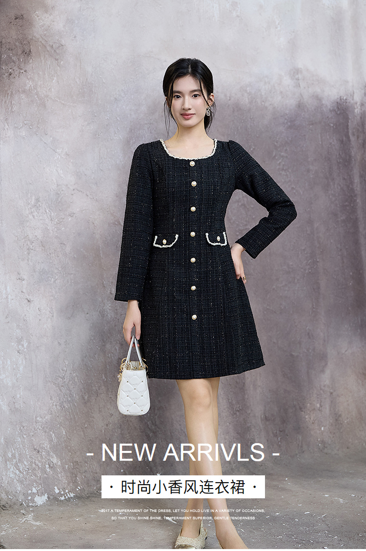 奢姿大码女装2025秋季减龄假口袋设计小香风连衣裙胖妹妹时尚裙子9953890649