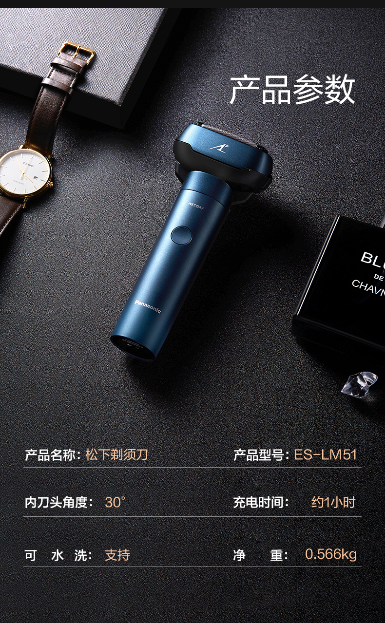 松下剃须刀大锤子Pro剃须往复式旗舰5刀头日本电动胡须刀全身水洗干湿两剃男士礼盒刮胡刀 520礼物 ES-LM53-K405