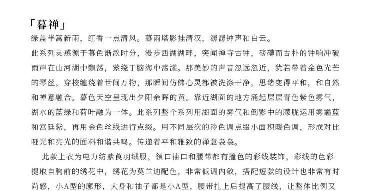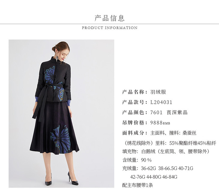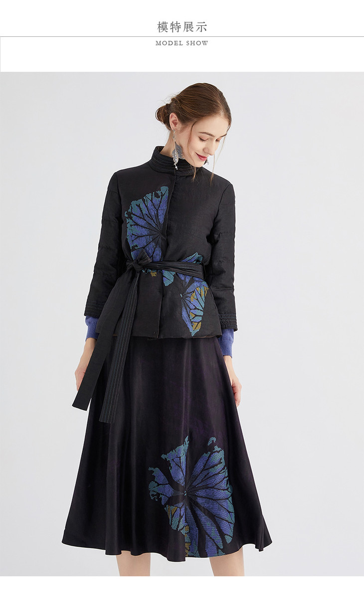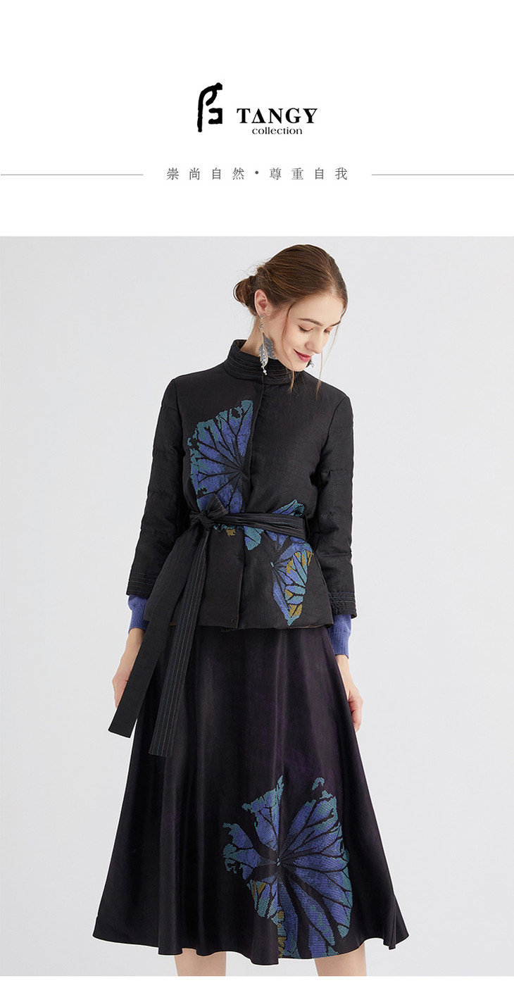 ANGY Collection 天意精品 暮禅系列 中式立领印花设计 鹅绒香云纱 莨绸羽绒服 L204031