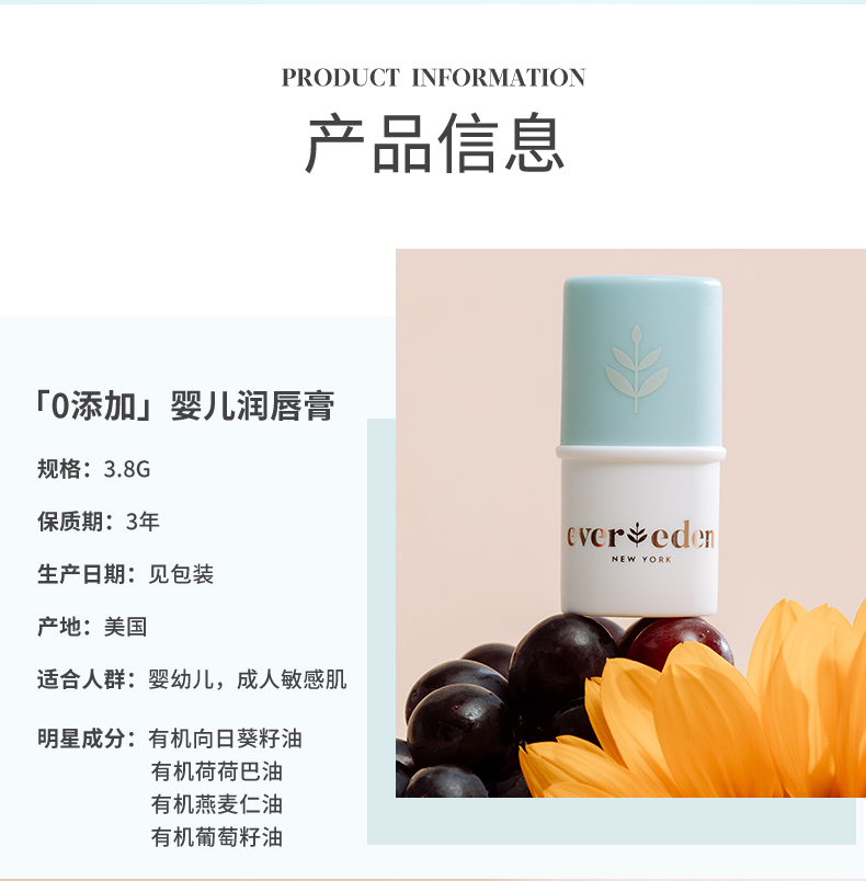 Evereden安唯伊婴儿天然植萃润唇膏儿童唇膏孕妇可用3.8g