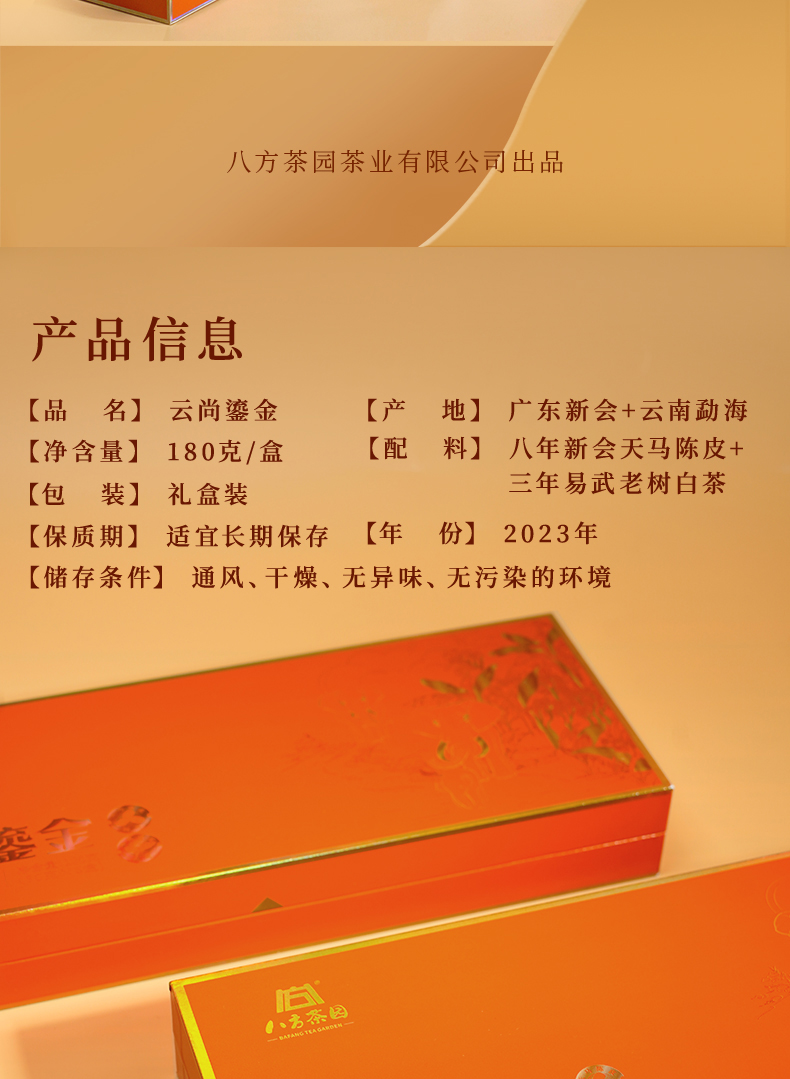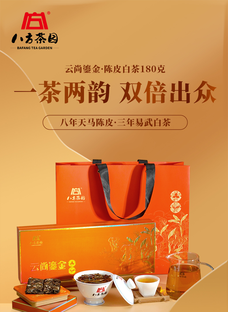 八方茶园2023年云尚鎏金陈皮白茶180克