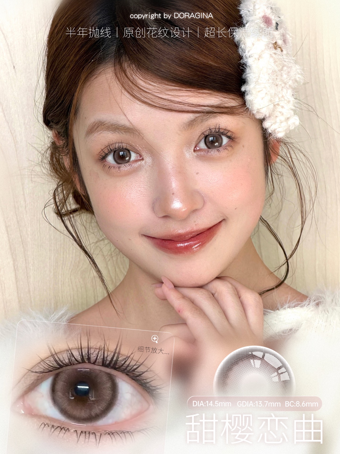 doragina 甜樱恋曲 粉棕色 14.5mm 半年抛 含硅水凝胶