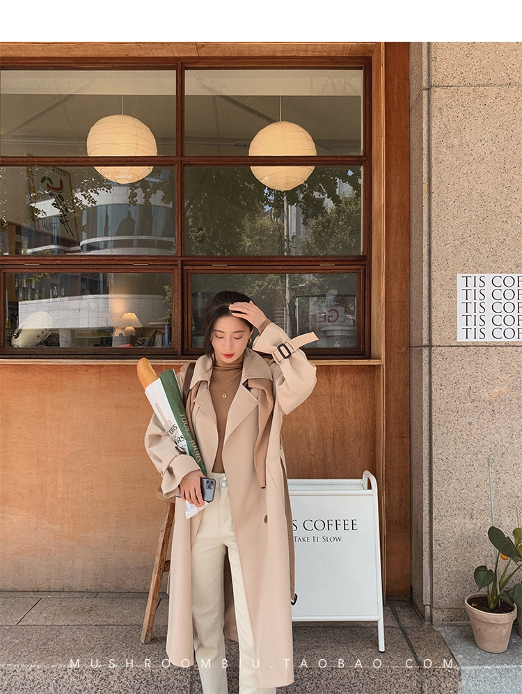 断码M 今日特价 【 诺丁山秋叶】小个子复古英伦风衣女宽松外套