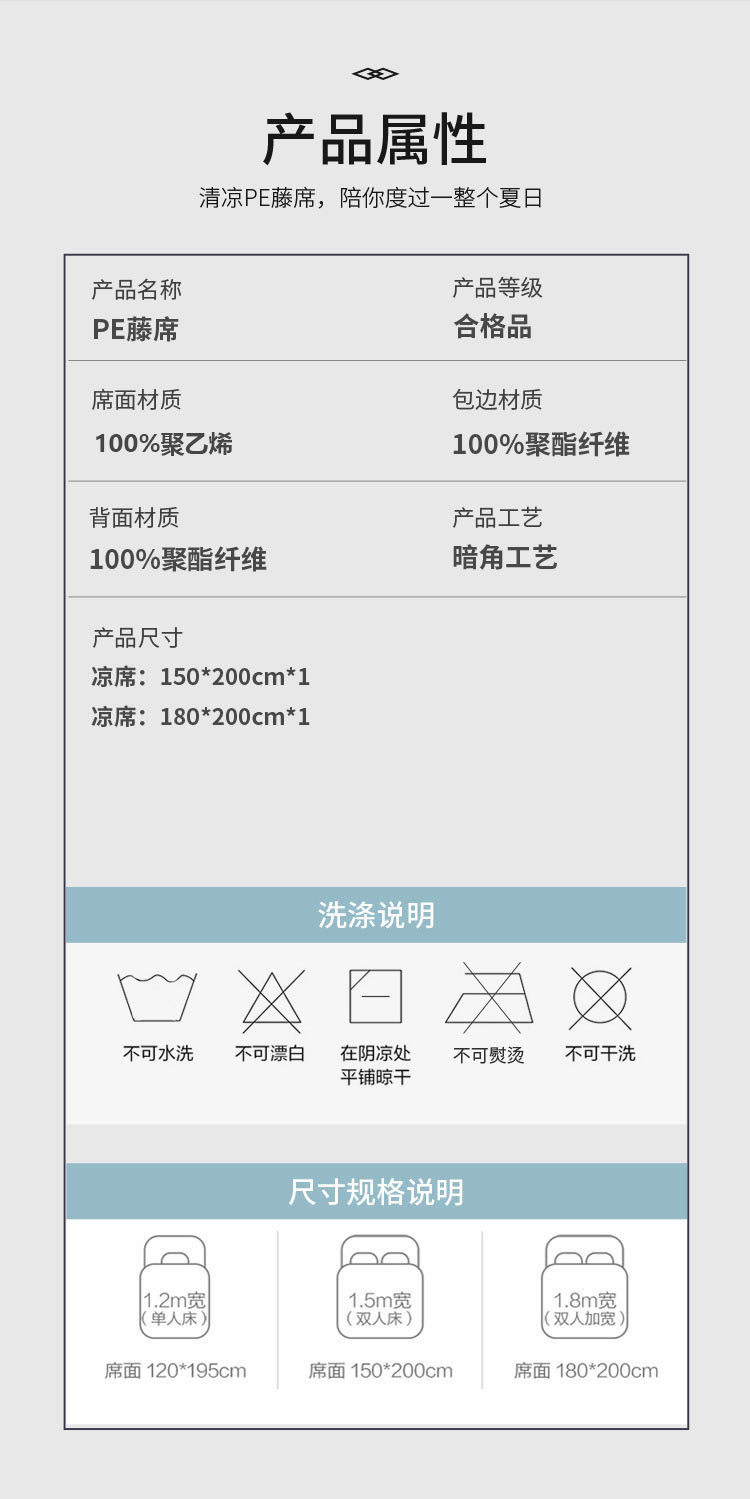 【古典藤席】古典高档加厚藤席空调席夏季冰丝凉席霸王藤席1.5M/1.8M高端PE藤