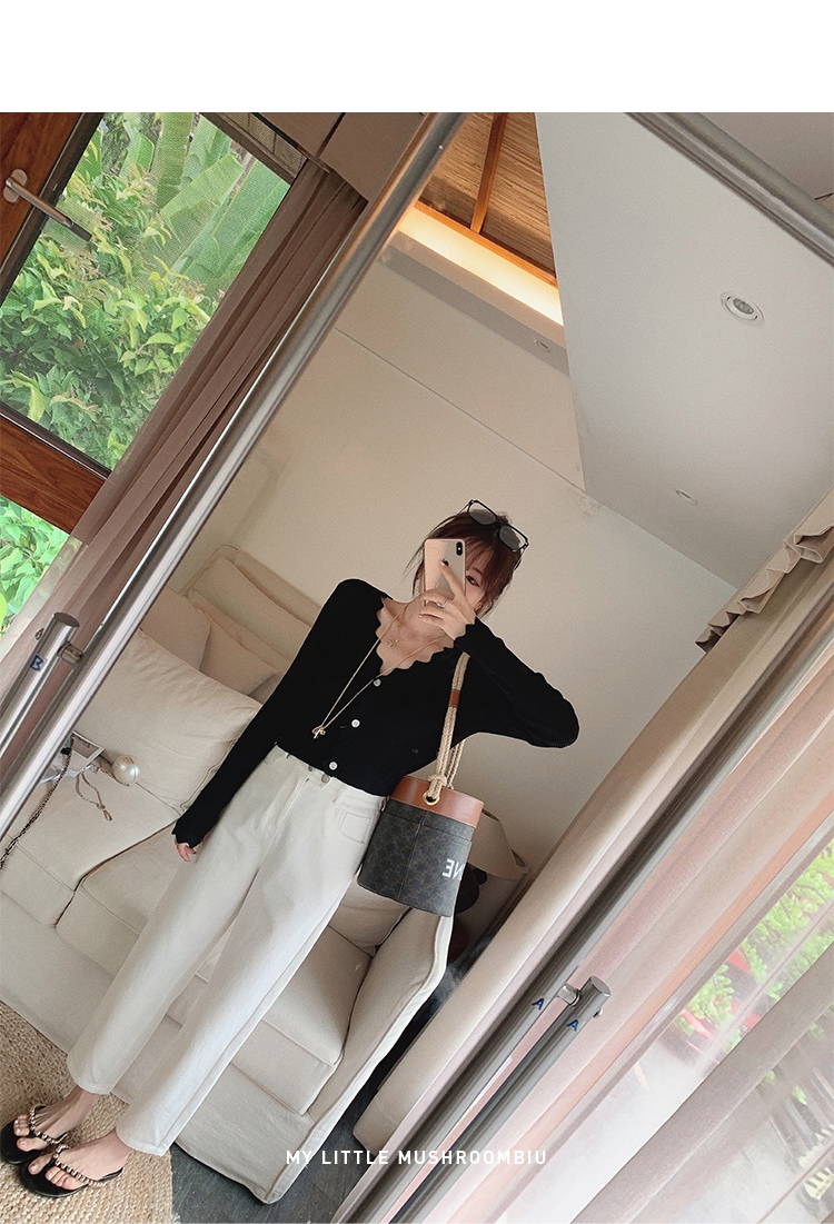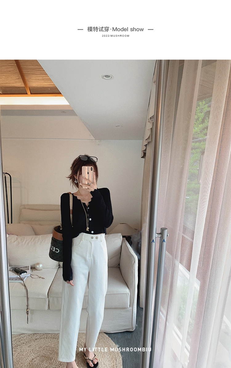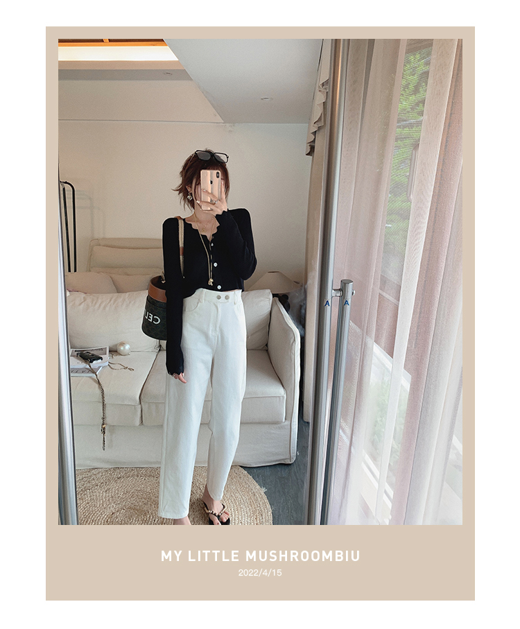 不退不换 介意慎拍! 八分版XS 金蘑菇菇【空调小白牛】高质棉纤维!松紧腰白色直筒牛仔裤