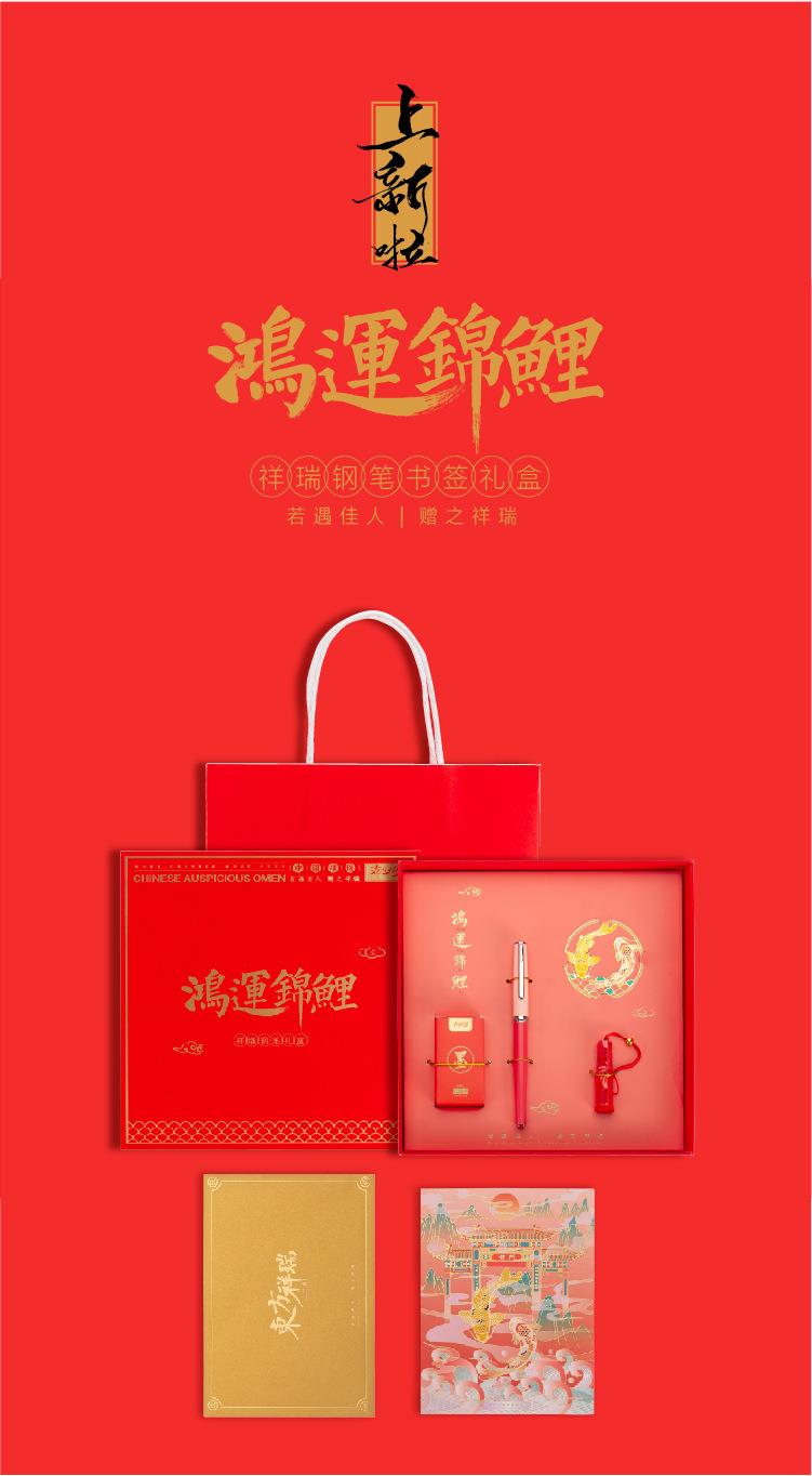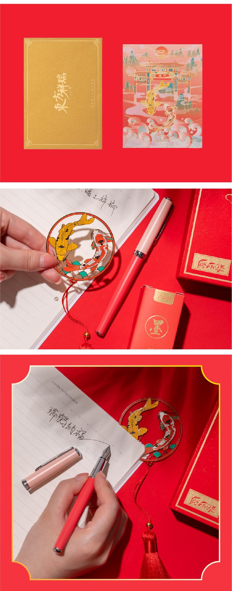 鸿运锦鲤国潮文创风礼品钢笔书签礼盒套装商务礼品教师节送老师