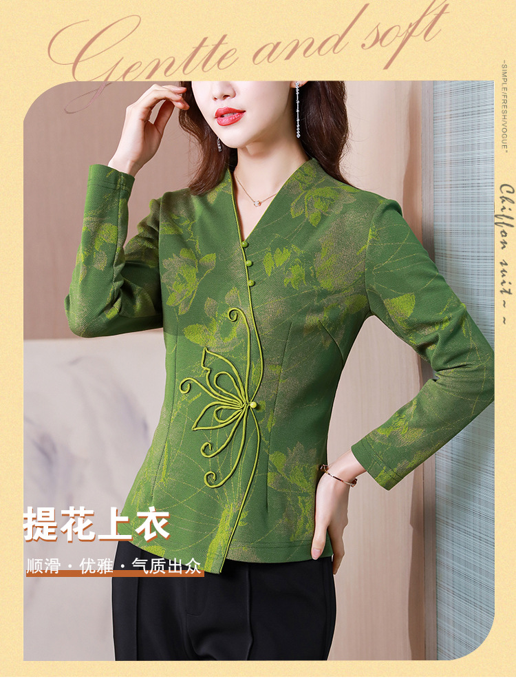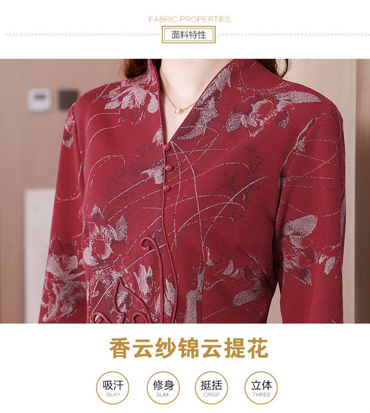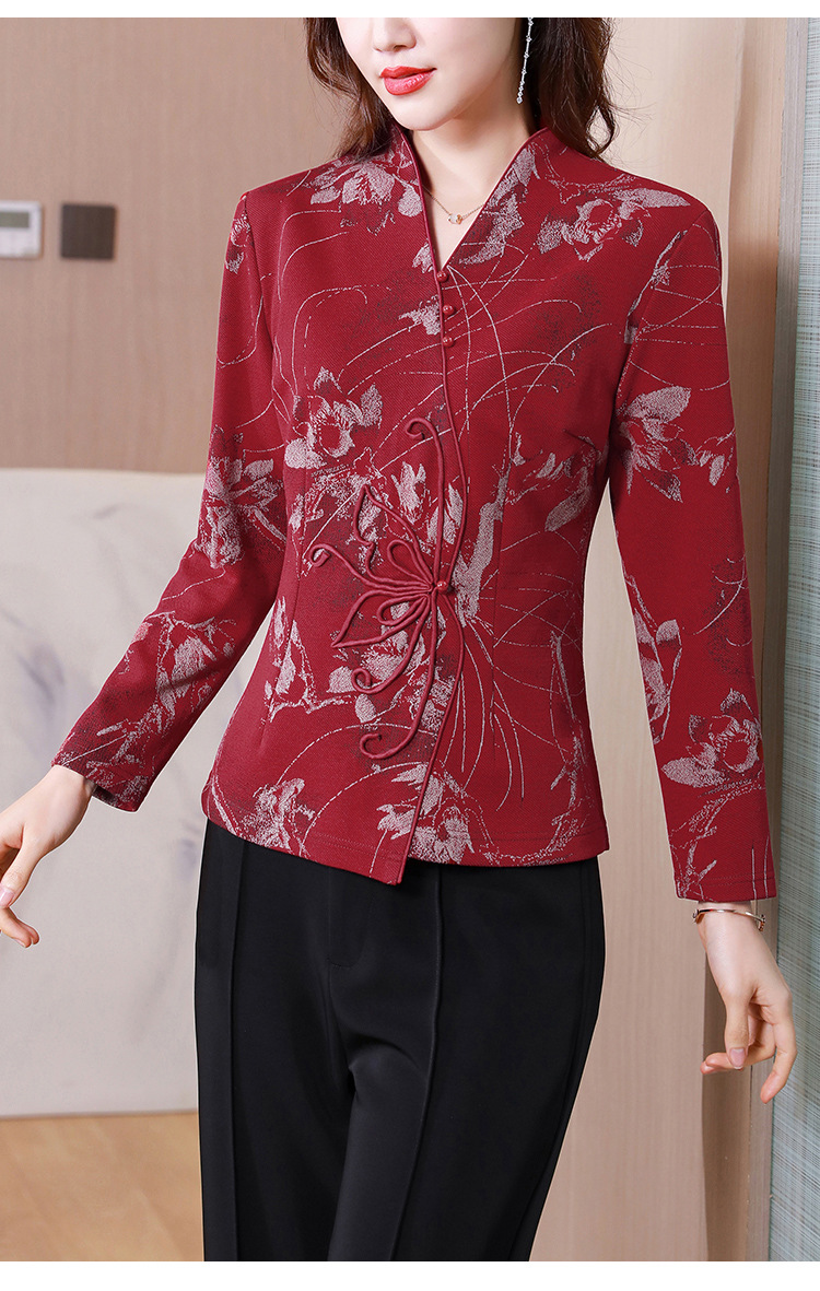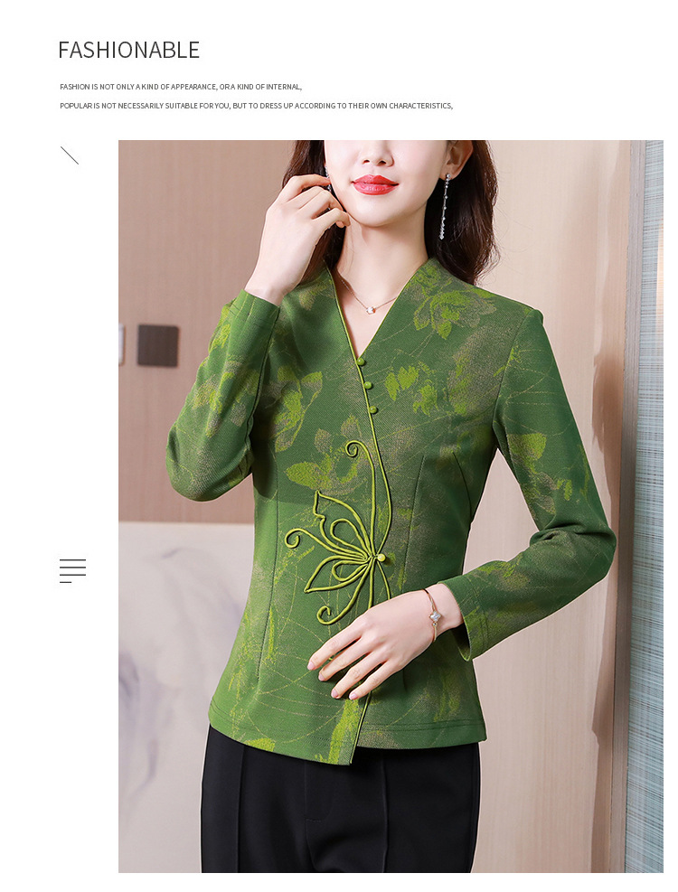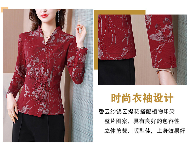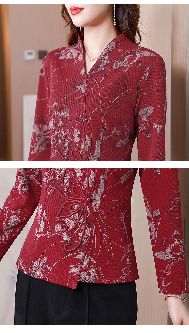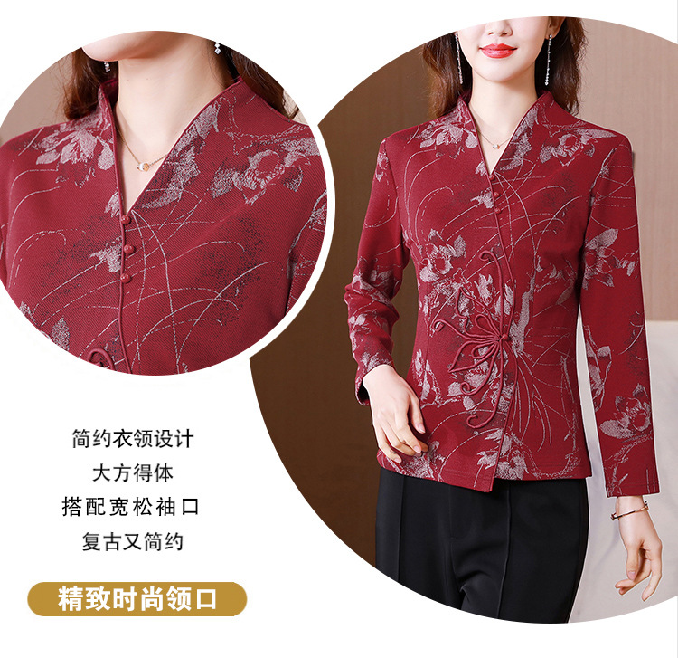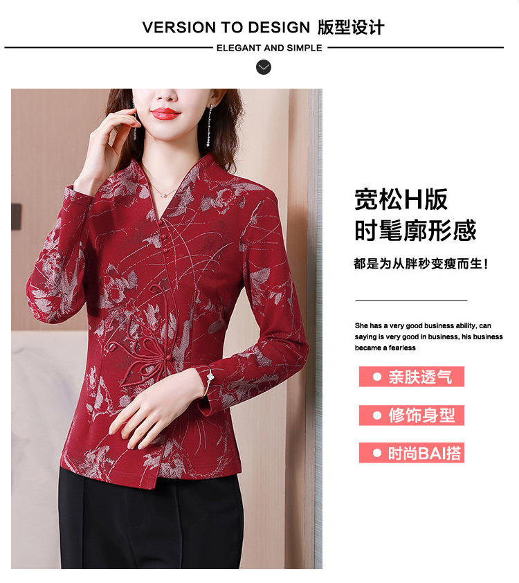 秋季新款,复古风套头衫v领修身提花衬衫百搭显瘦印花上衣KQL-435H5225