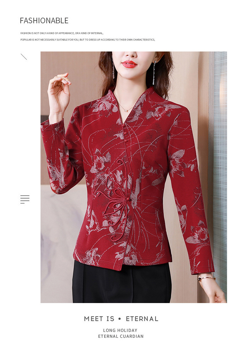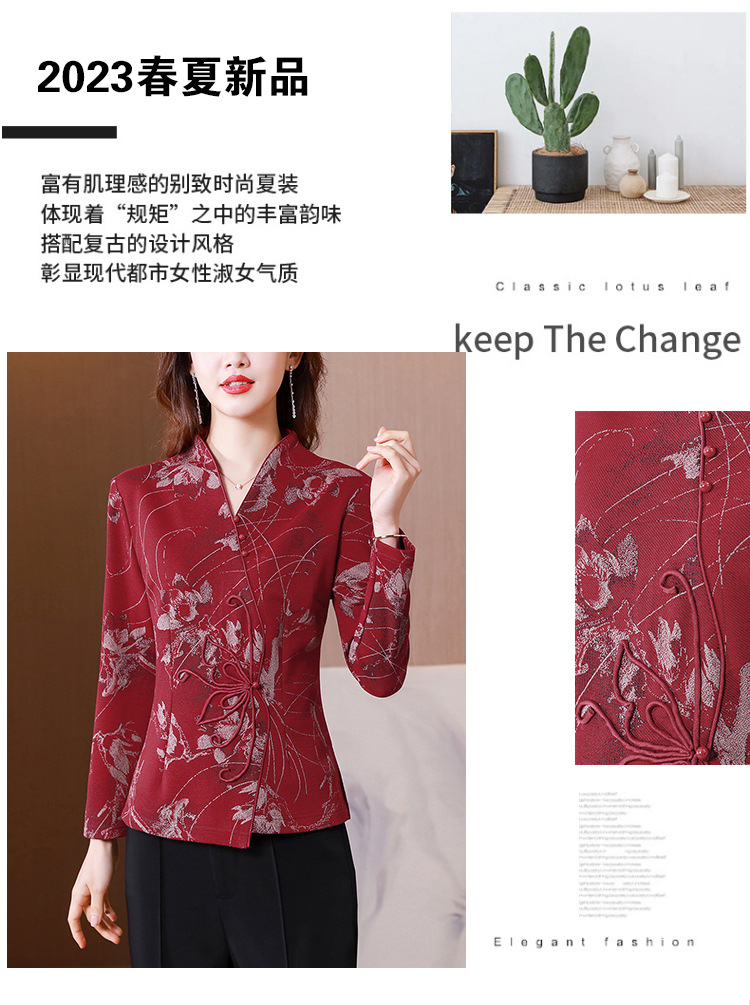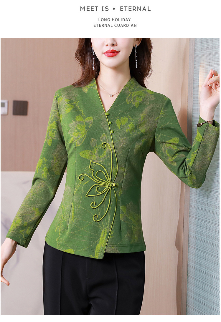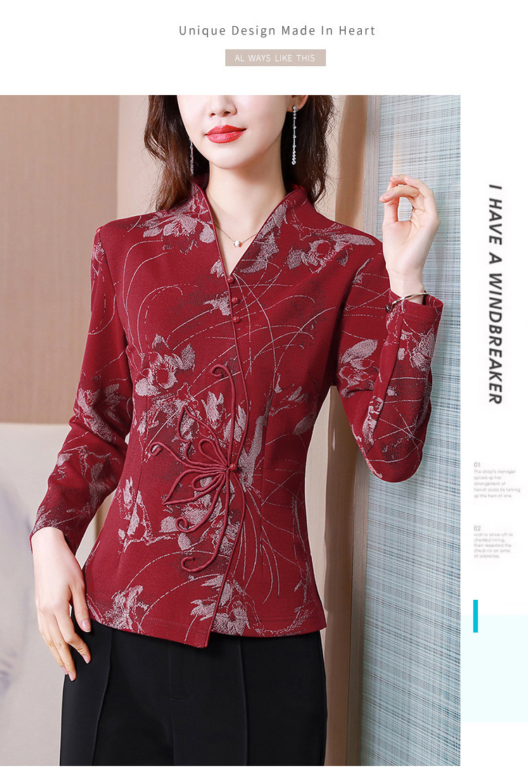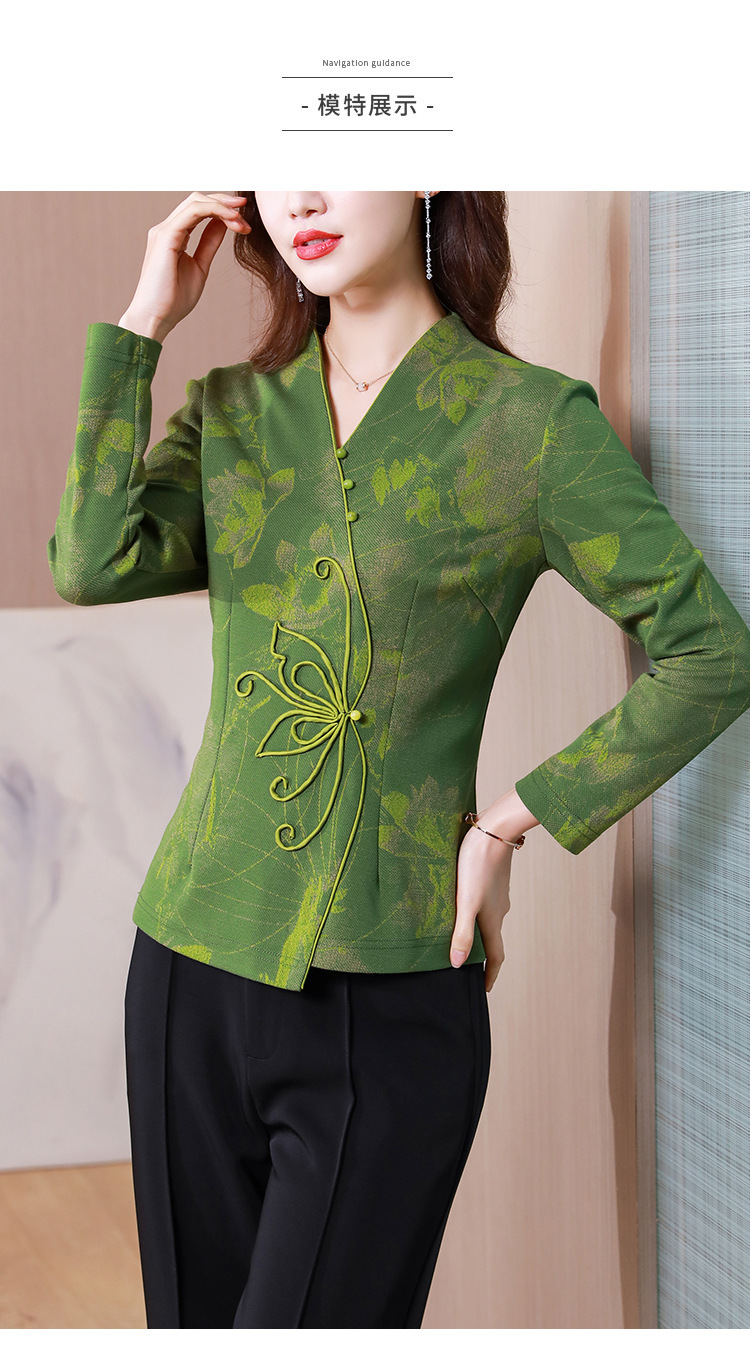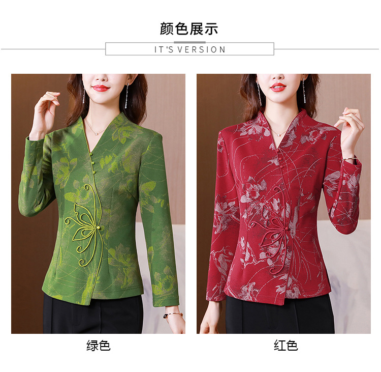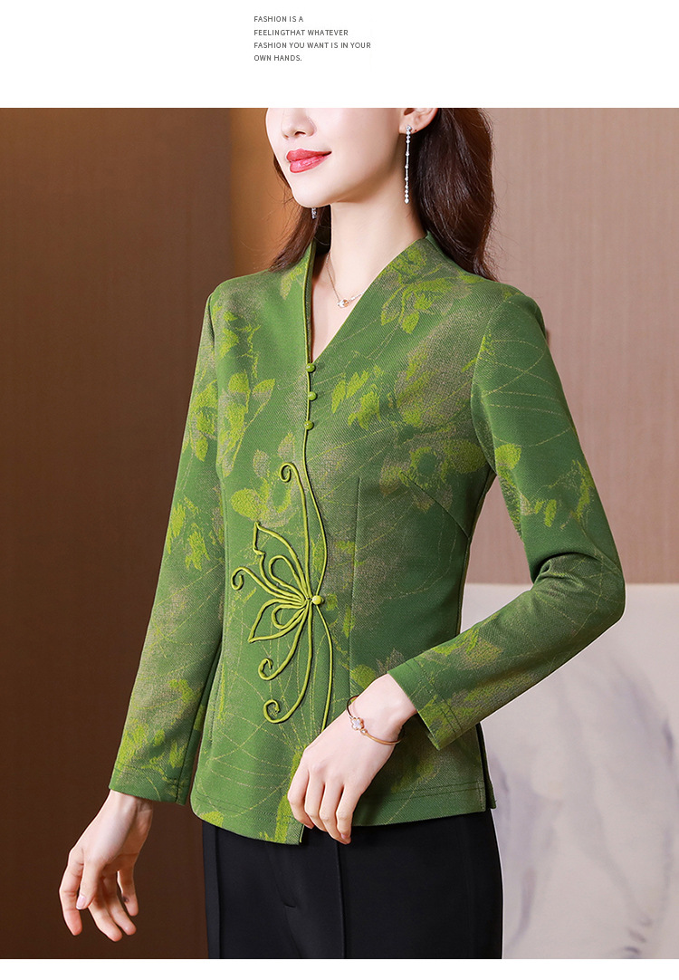 秋季新款,复古风套头衫v领修身提花衬衫百搭显瘦印花上衣KQL-435H5225