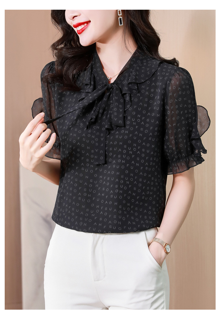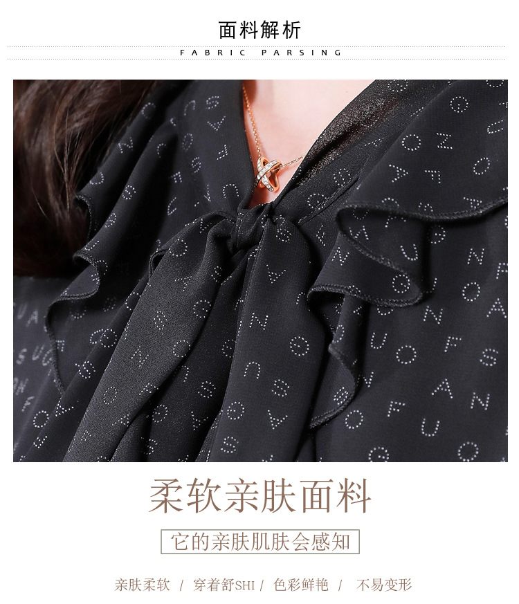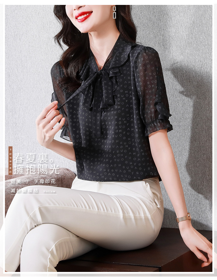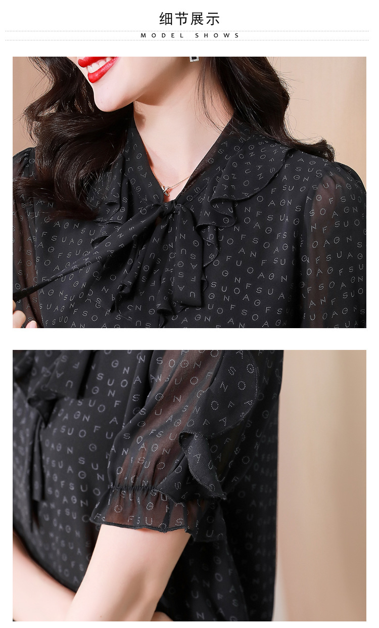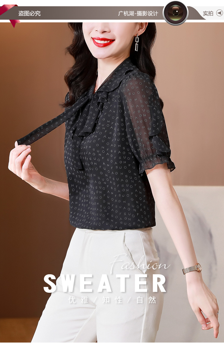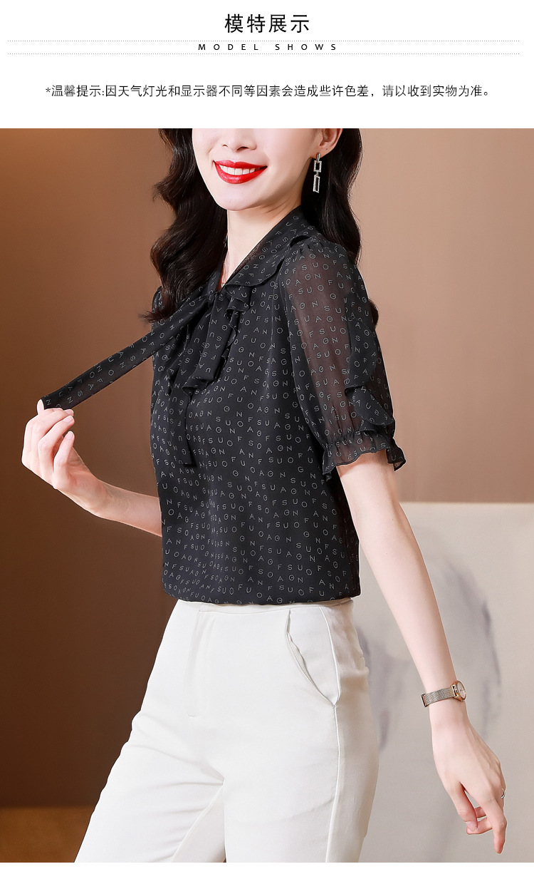 漂亮时尚,印花飘带洋气花内搭打底雪纺衫系带别致上衣KQL-3593