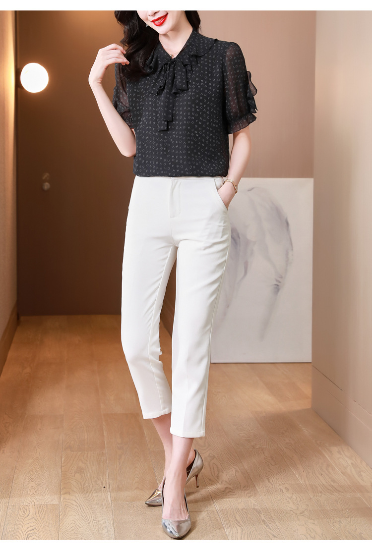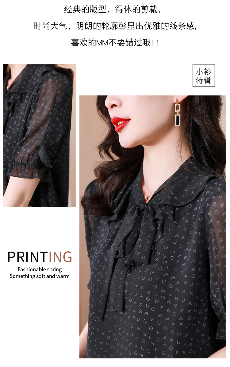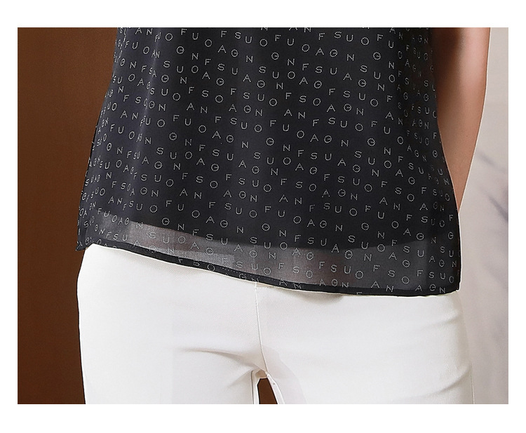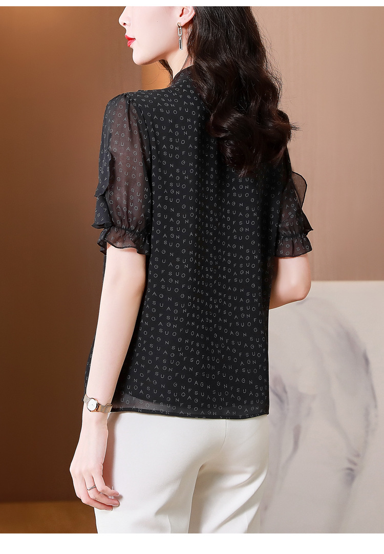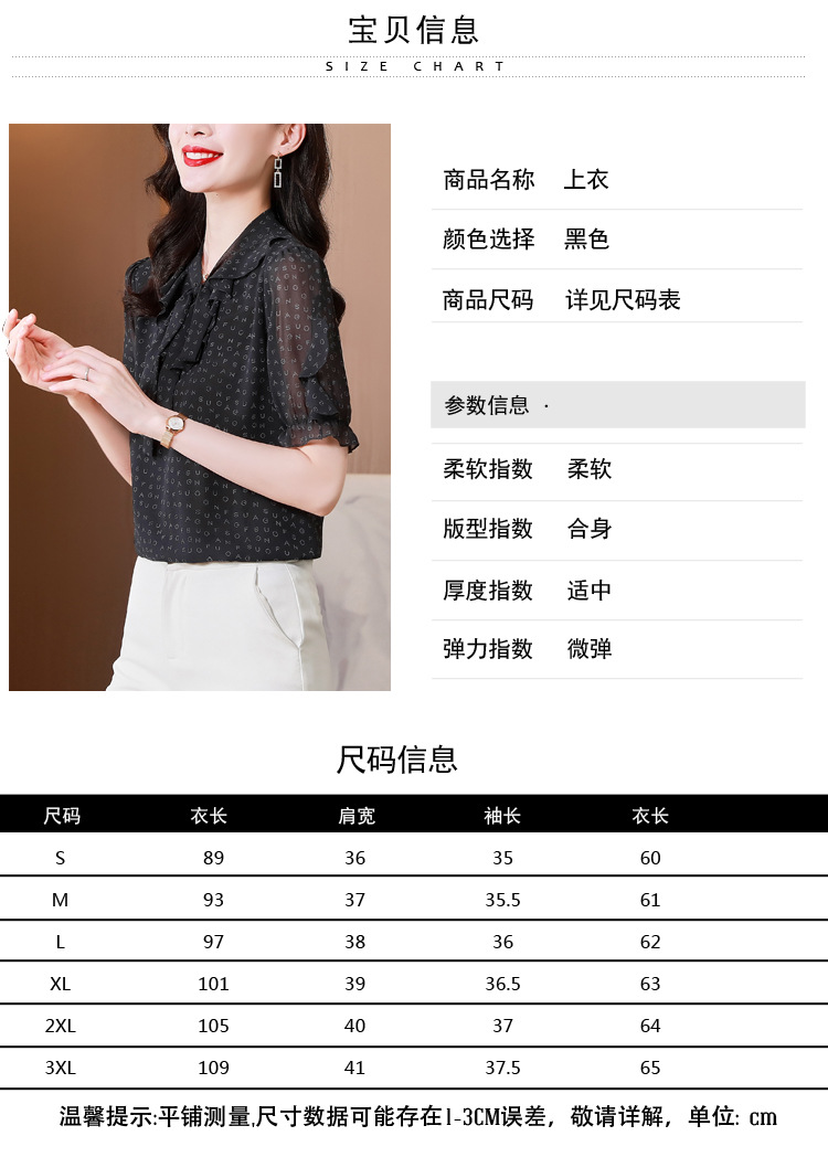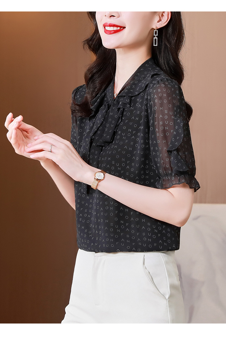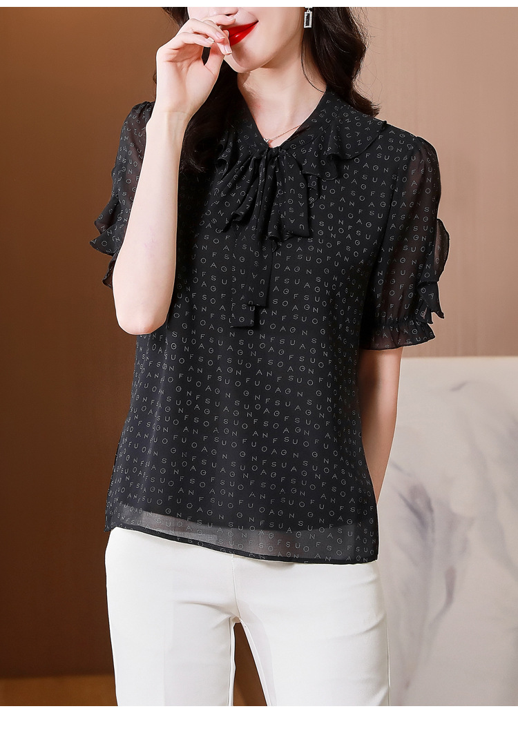 漂亮时尚,印花飘带洋气花内搭打底雪纺衫系带别致上衣KQL-3593