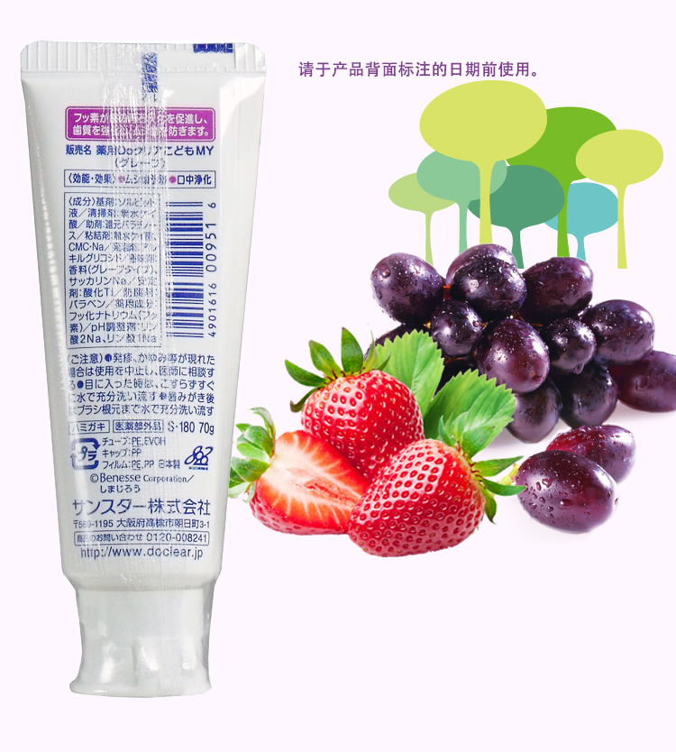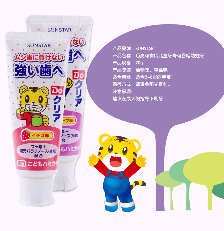 【一般贸易】日本 巧虎 可吞咽宝宝儿童牙膏 70g(草莓味)