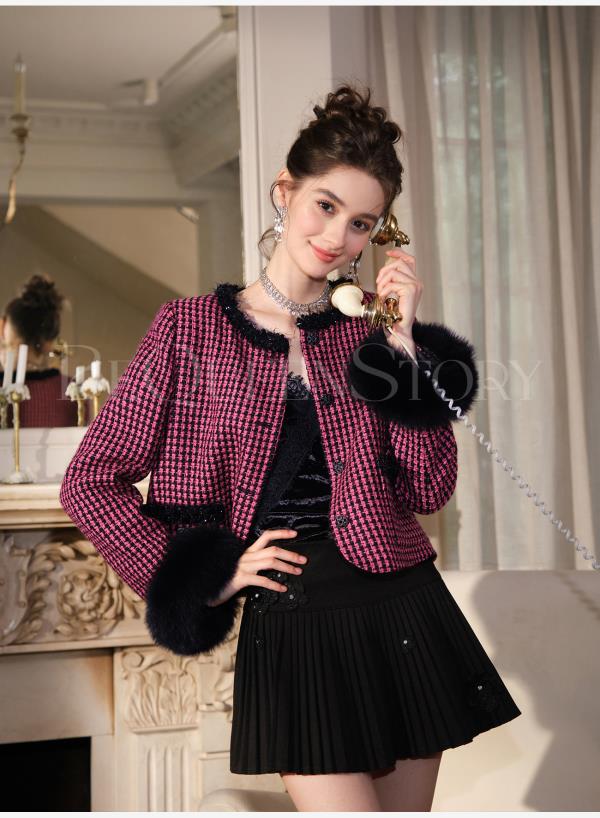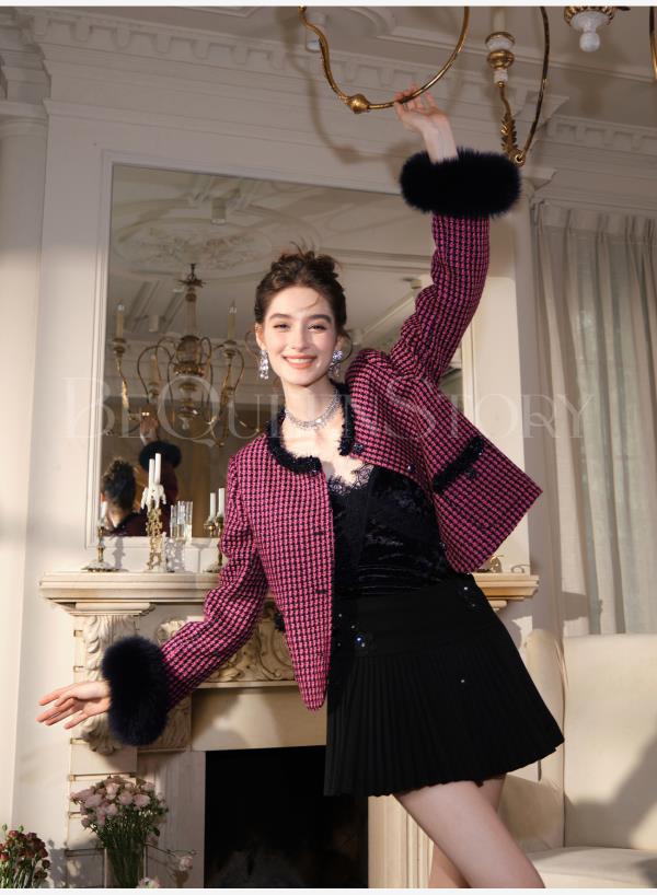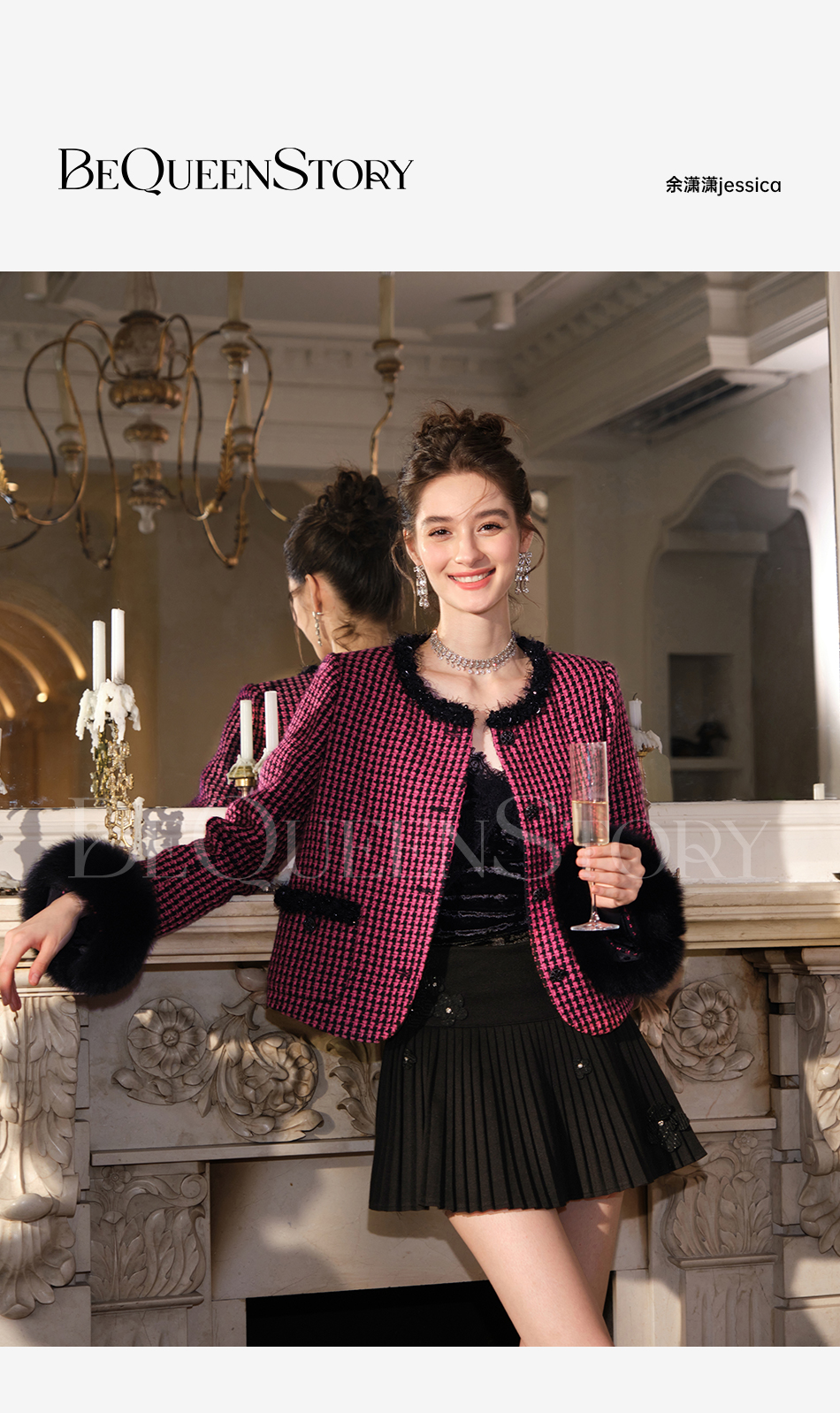 BeQueenStory【黑玫公爵】复古摩登气质毛边圆领白ya绒小香风外套