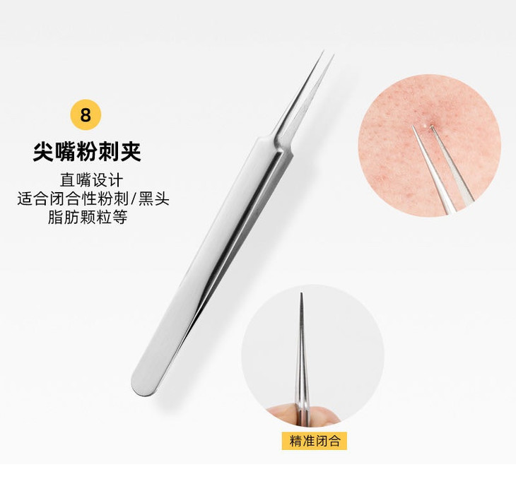 ✅不是所有的细胞夹都能拿来夹黑头,市面上有很多几块钱的细胞夹做工粗糙,夹头看似尖,实则太平太粗,闭合度不高,导致没办法夹出黑头粉刺。 ✅而这支细胞夹是美容院级别的工具,连美容师都极力推荐的产品。 ✅采用的是超尖细工艺,镊口小于0.1mm!可以在不伤害肌肤的情况下 ✅即使是小小的黑头,也能精准地将黑头粉刺连根拔起,不留痕迹