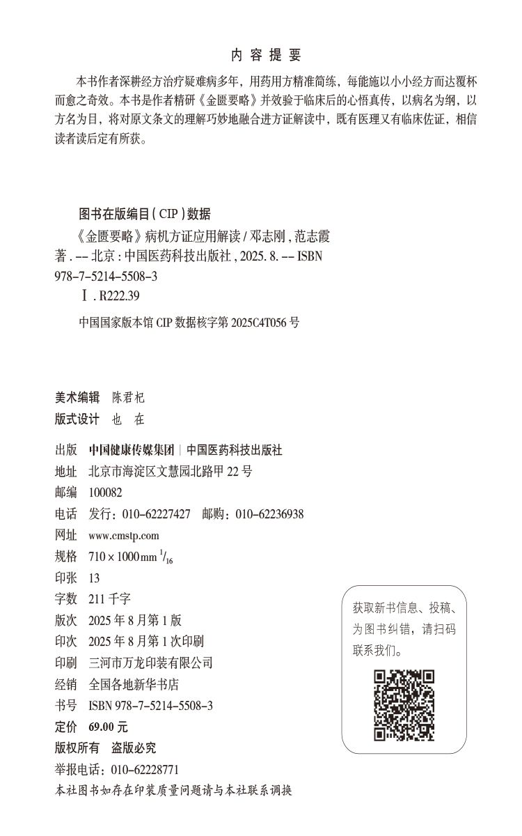 《金匮要略》病机方证应用解读 邓志刚 范志霞 涵盖脏腑经络病 伤寒类病 呼吸系统疾病产后病等杂症论治 中国医药科技出版社