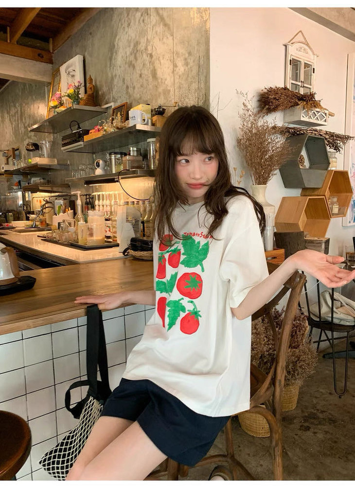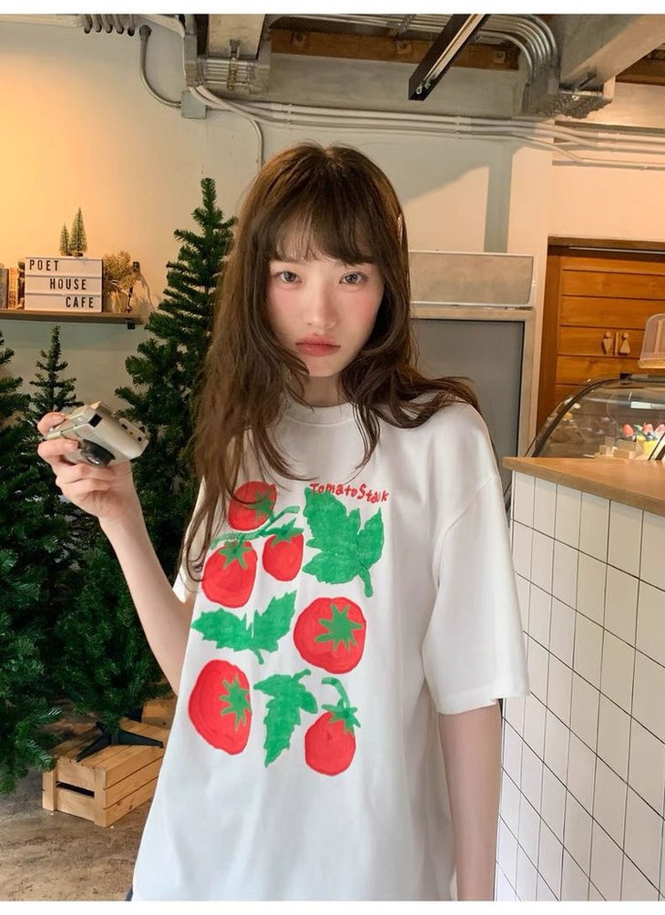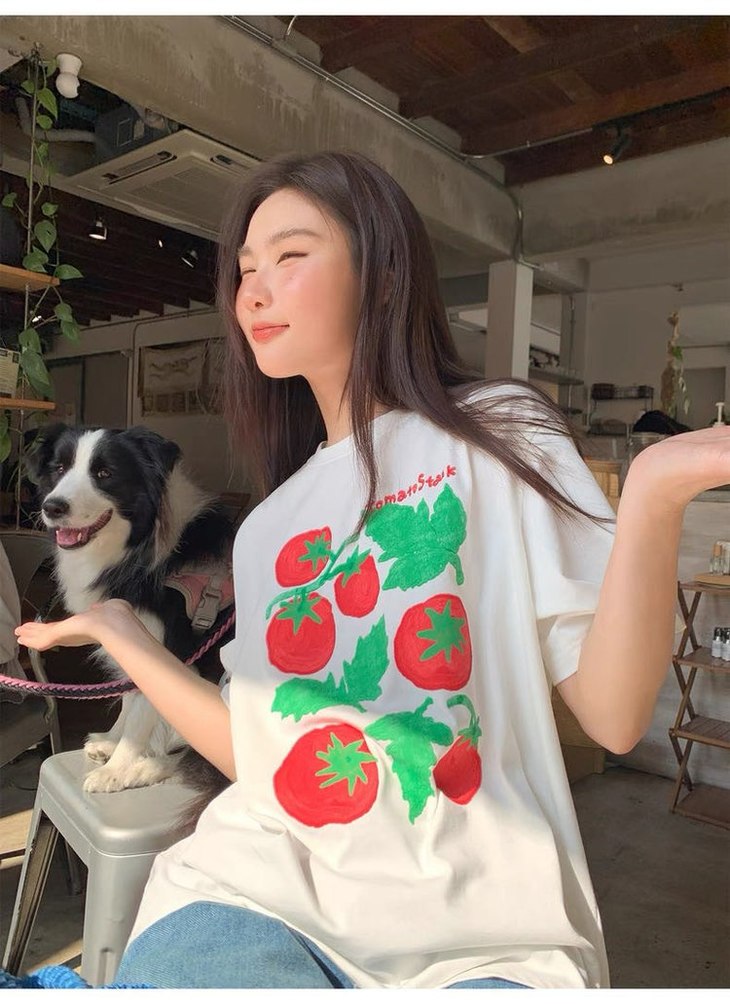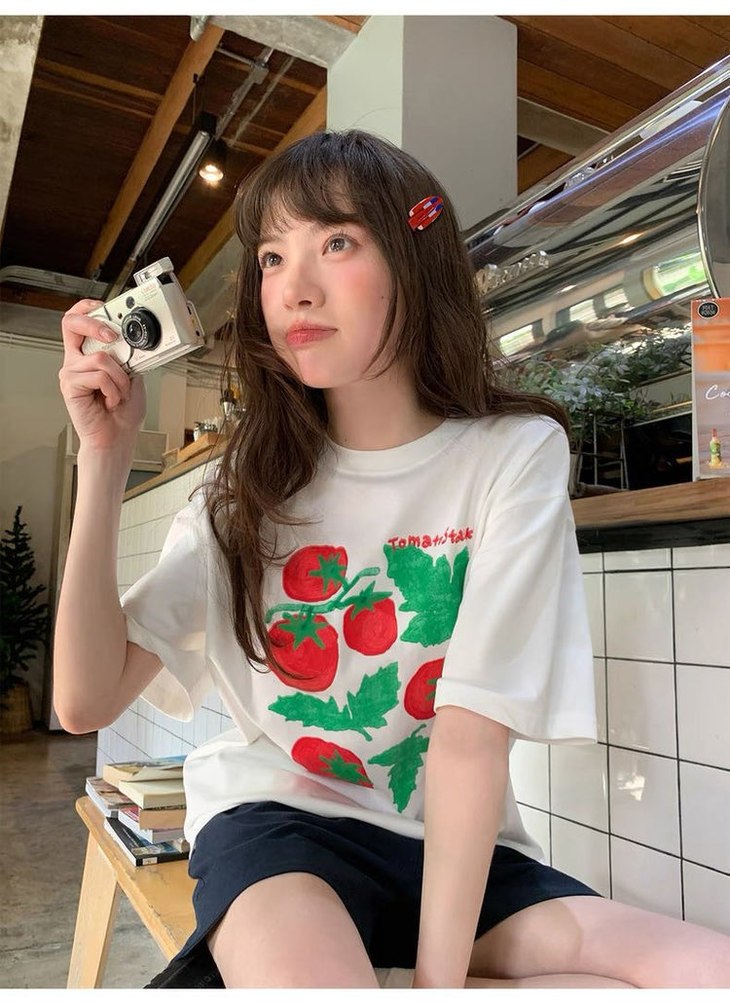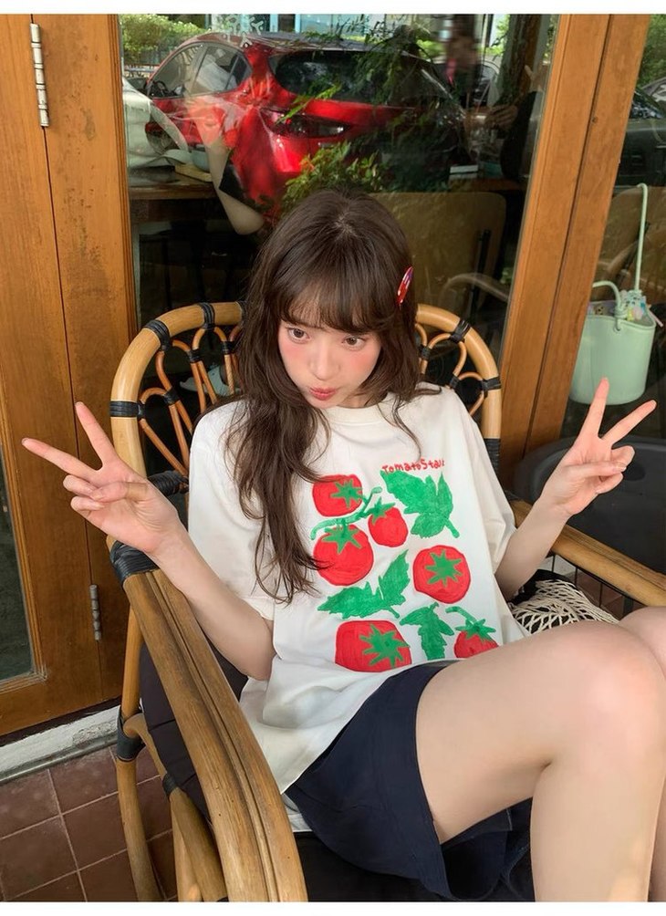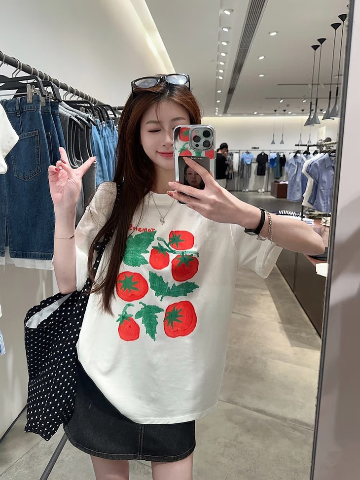 🥰独家打板❗太韩啦❗巨显白❗一眼种草❗💝【伊泺杉番茄印花休闲短袖T恤】 🍅水果味的夏天❗一秒降温清爽水果tee❗夏日里的一抹鲜亮 🍅俏皮元气!