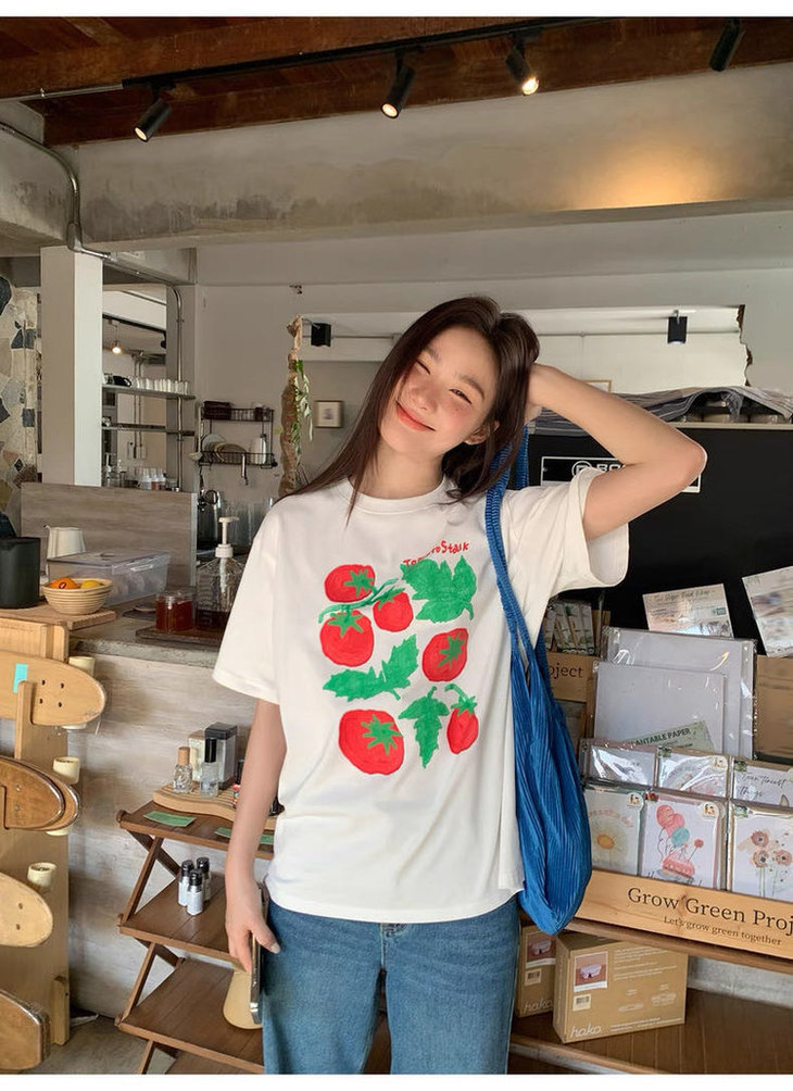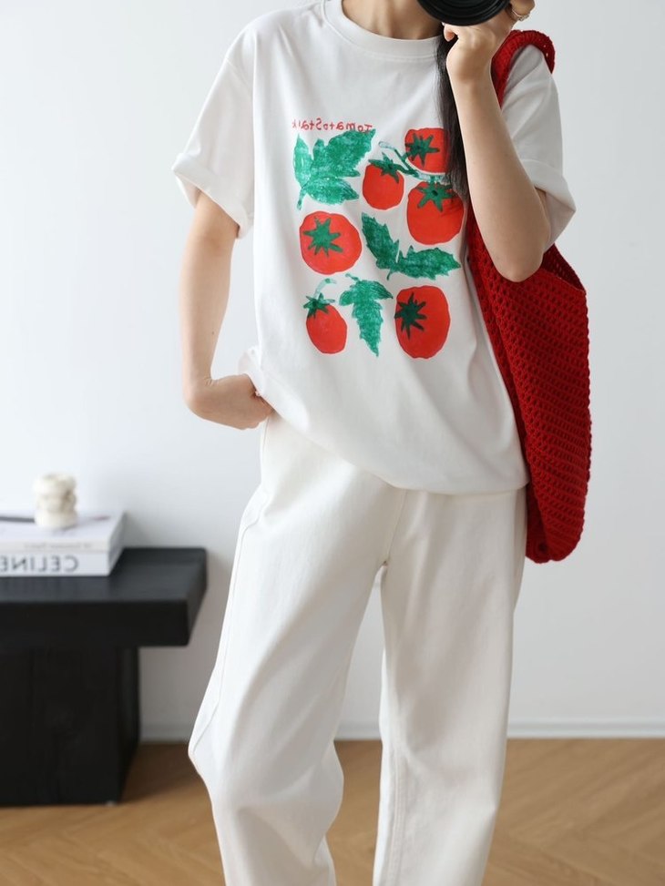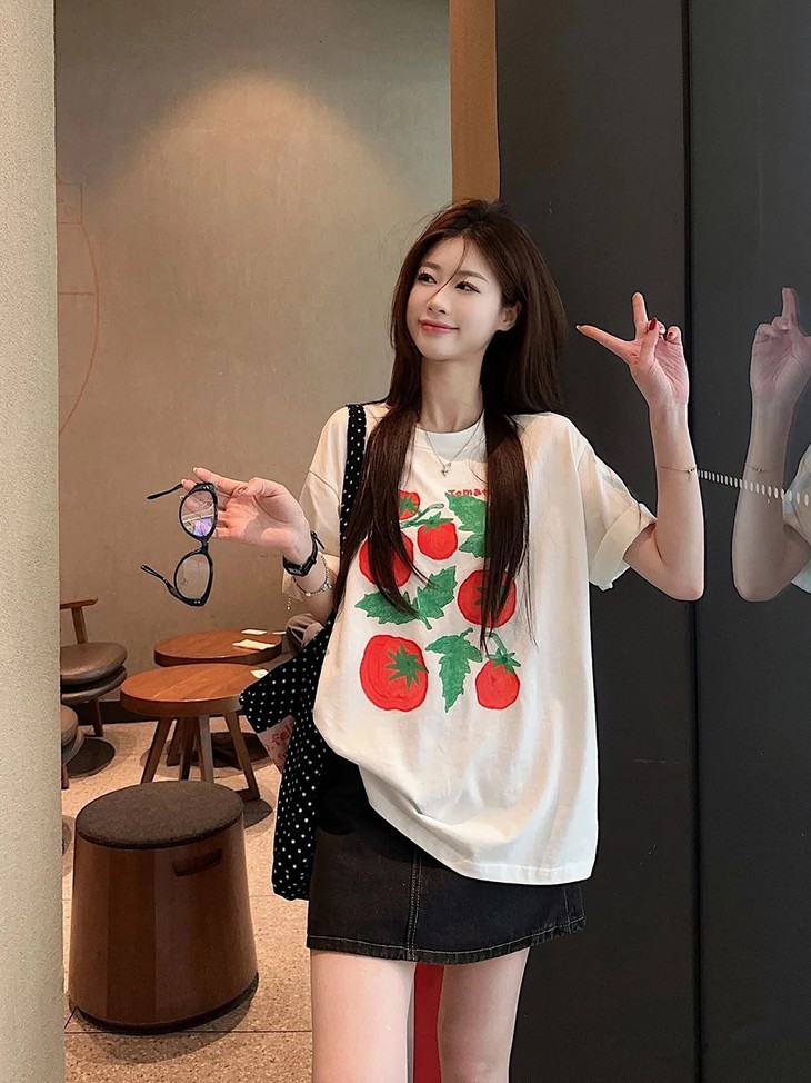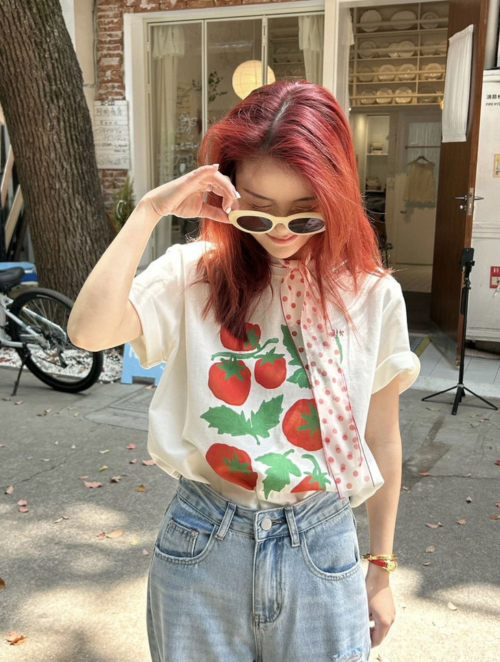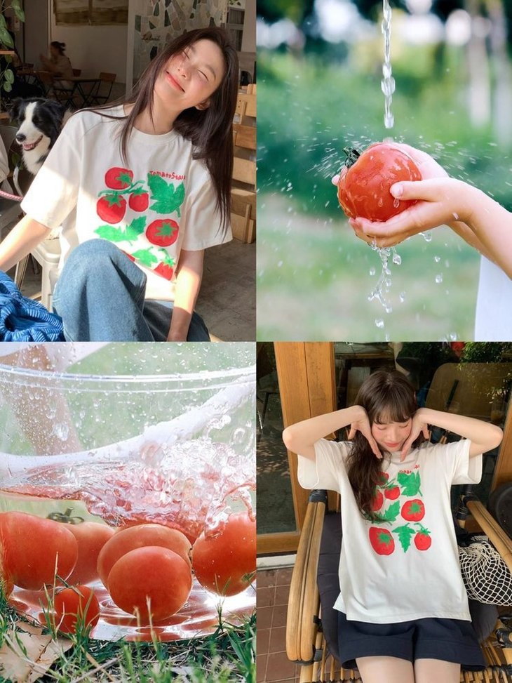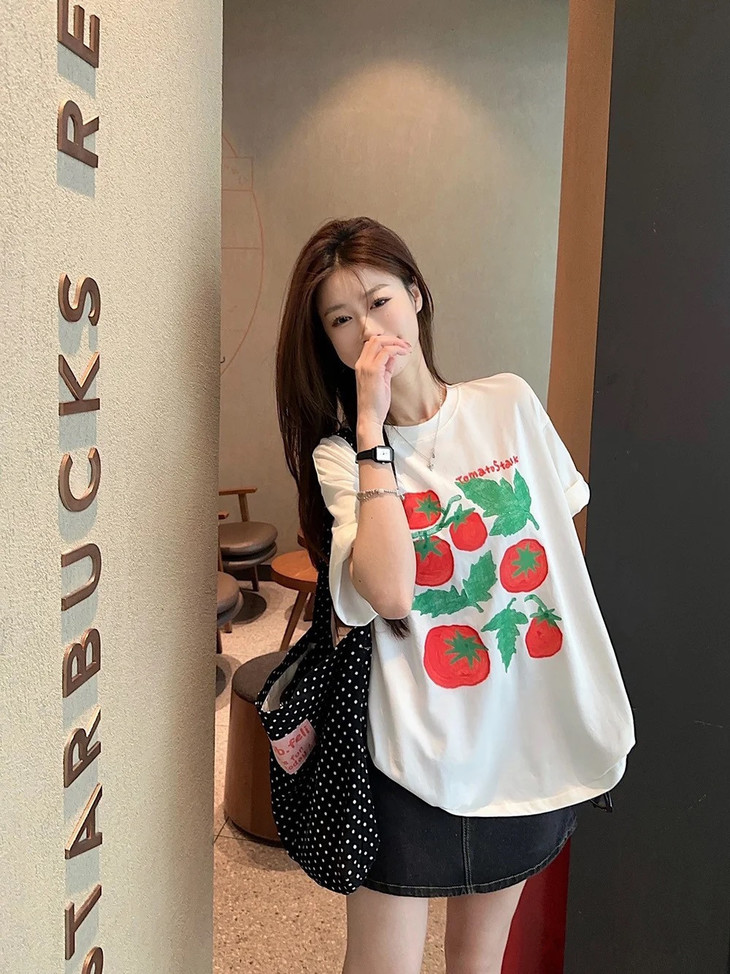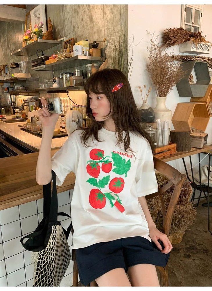 🥰独家打板❗太韩啦❗巨显白❗一眼种草❗💝【伊泺杉番茄印花休闲短袖T恤】 🍅水果味的夏天❗一秒降温清爽水果tee❗夏日里的一抹鲜亮 🍅俏皮元气!