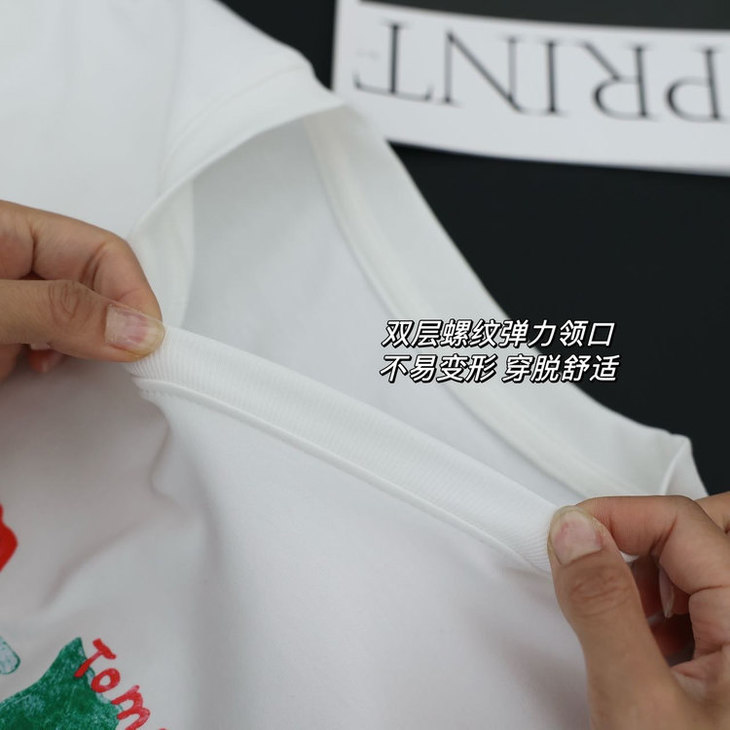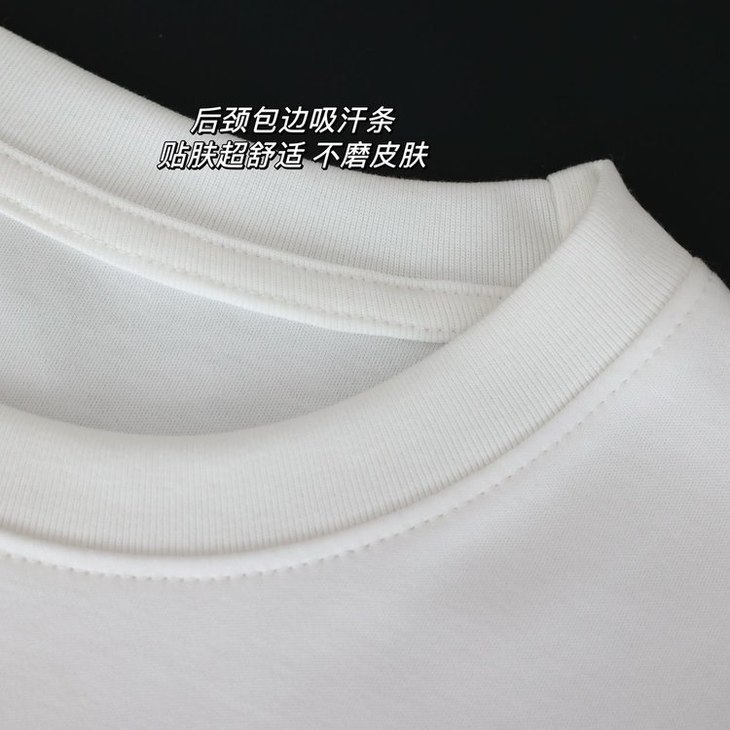 更多细节实拍! 圆领设计好穿脱~ 双层螺纹弹力领口 久穿久洗也不易变形卷边 袖口下摆双针冚车压线 做工贼精致!贴肤细腻 敏感肌姐妹也可以放心穿!