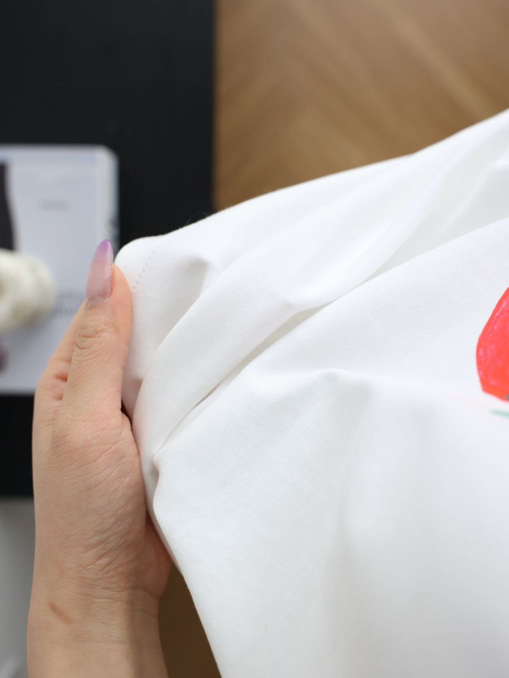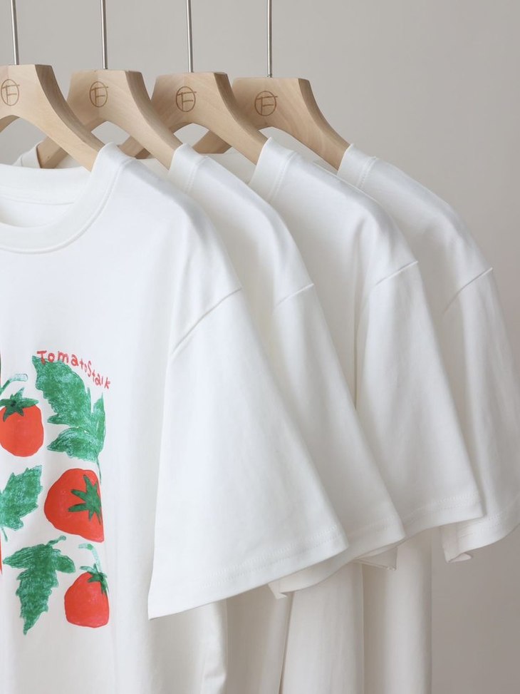 团长碎碎念 可可爱爱~番茄脑袋! 谁还没有这件夏日元气短袖! 纯白色底色,清爽佰搭 衬得番茄更浓郁诱人啦 大大的印花,带点美式复古风 看腻了形形sese的印花 这一件充满灵动趣味感! 宽松版型,基础套头圆领设计 纯白色好搭配不挑人 是日常通勤,任何场景都好穿的款 100%纯棉面料,贴身穿着透汽不闷热 夏季也能放心穿,快速透气不闷汗 必入的一件 !真正的物超所值!