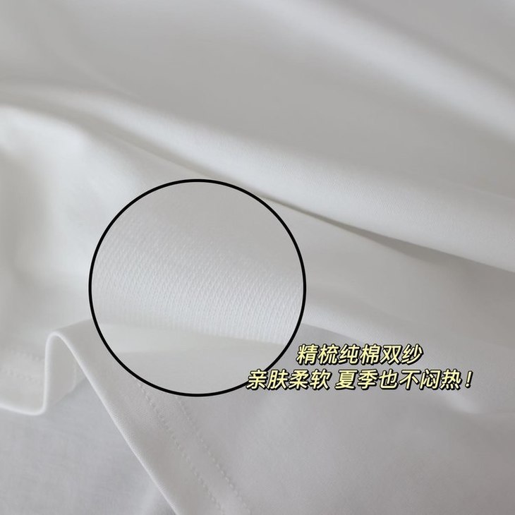 拒绝薄透软塌的“一次性T恤” 210克重100%精梳纯棉双纱面料 软到像第二层皮肤~ 弹力也是很大的哦 自由活动不受束缚 贴身不透不闷汗,夏天穿也清清爽爽 洗衣机滚N次都不变形! (敏感肌姐妹也能闭眼冲)