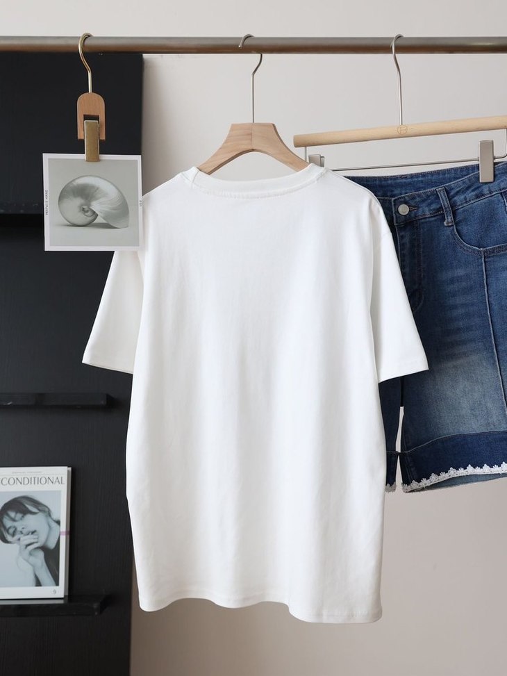 肩部落肩设计,视觉模糊肩线 结合宽松版型,彰显纤瘦感 遮肉显瘦,上身没有束缚 自在包容多种身形 上身既不松垮,也不紧绷 就是你想要的那种合身tee! 螺纹领口穿脱自如 服帖耐穿 不易变形 春夏叠穿搭配也没有负担!