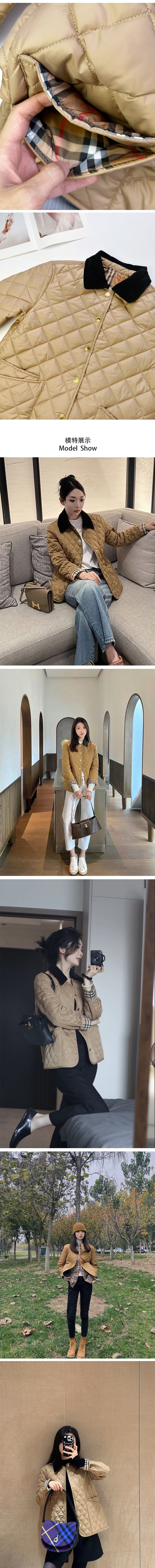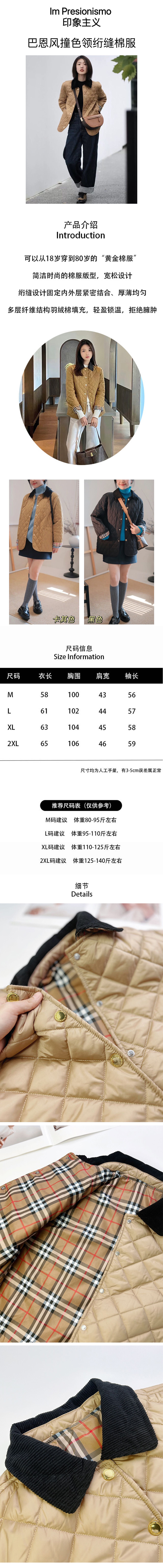 巴恩风撞色领绗缝棉服