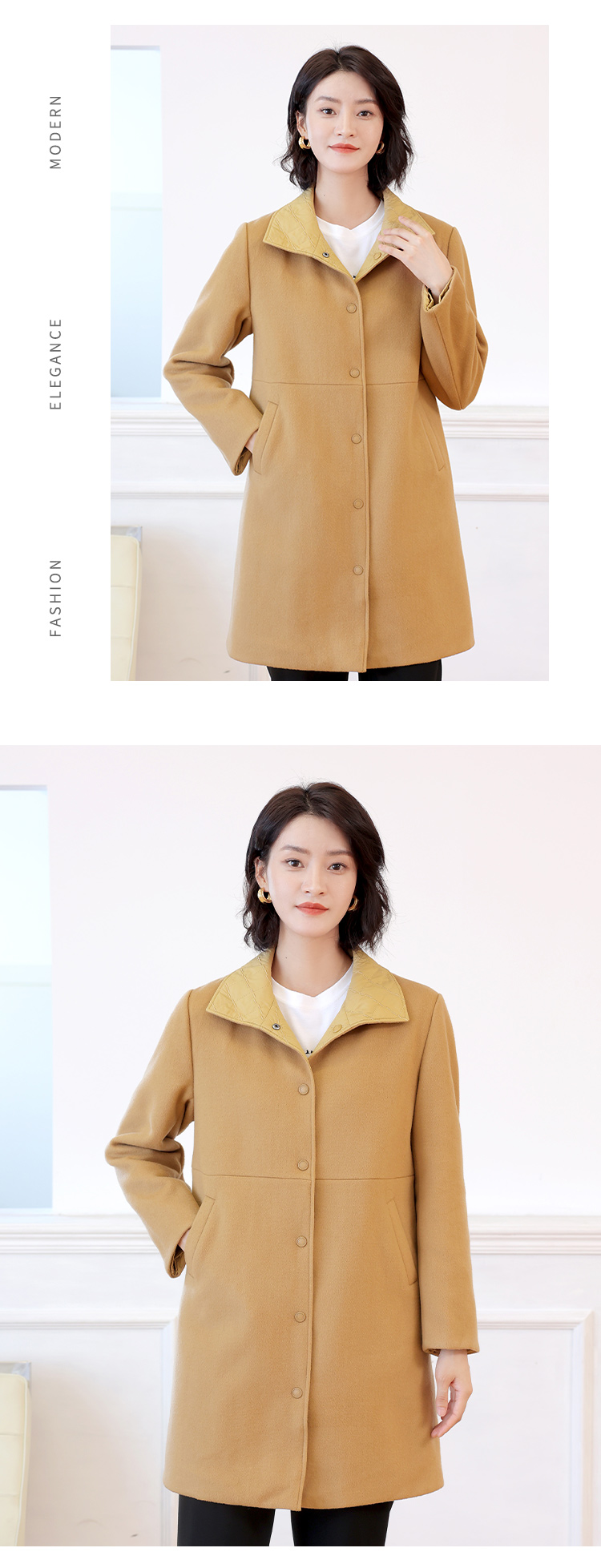 佐尔美冬季女款时尚毛呢外套大衣女单排扣直筒羊毛外套E64ZD23