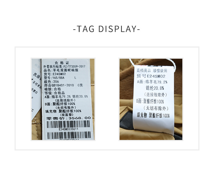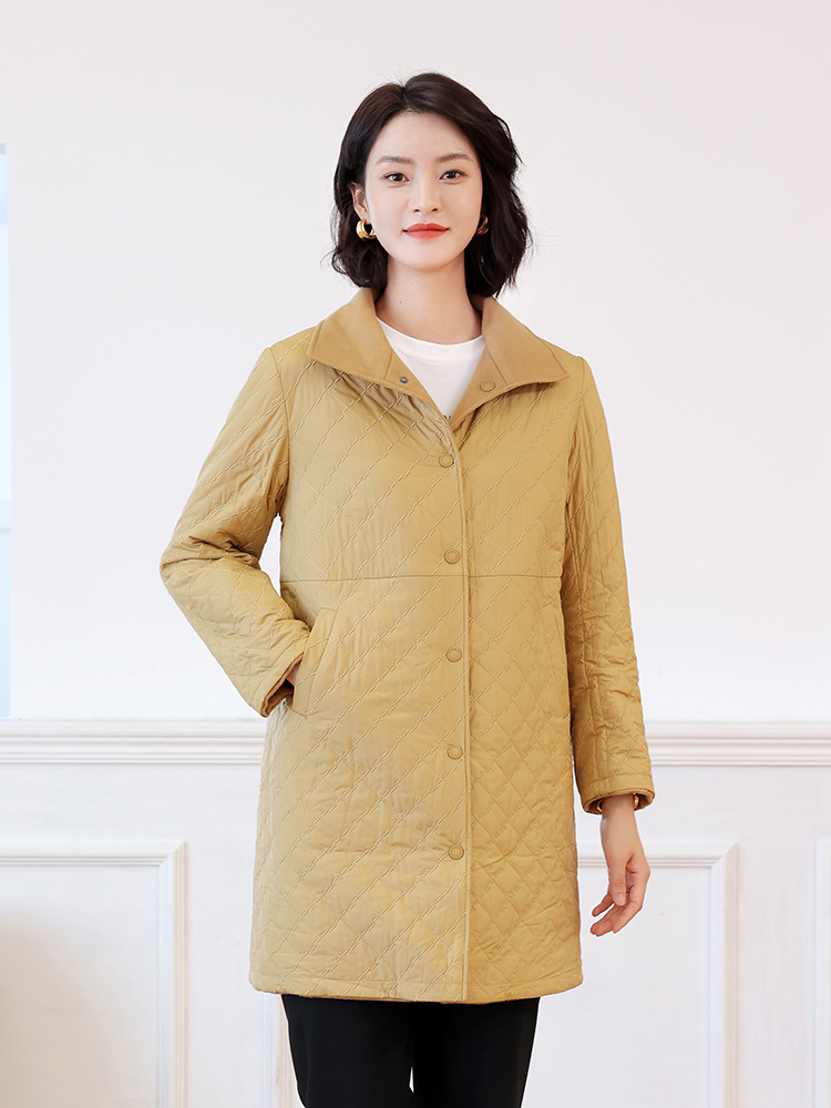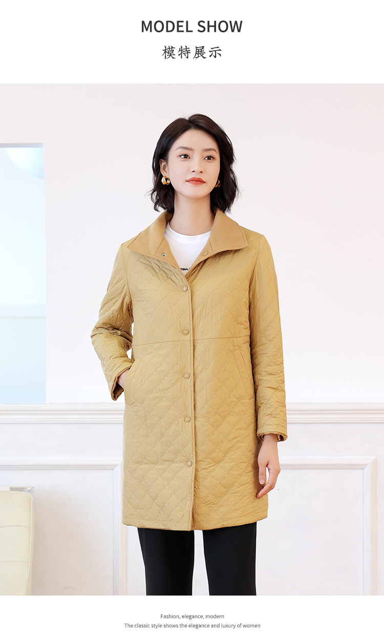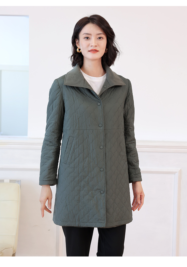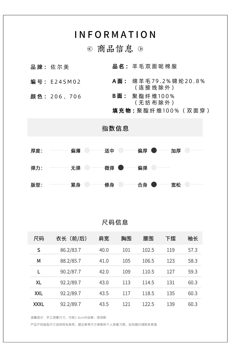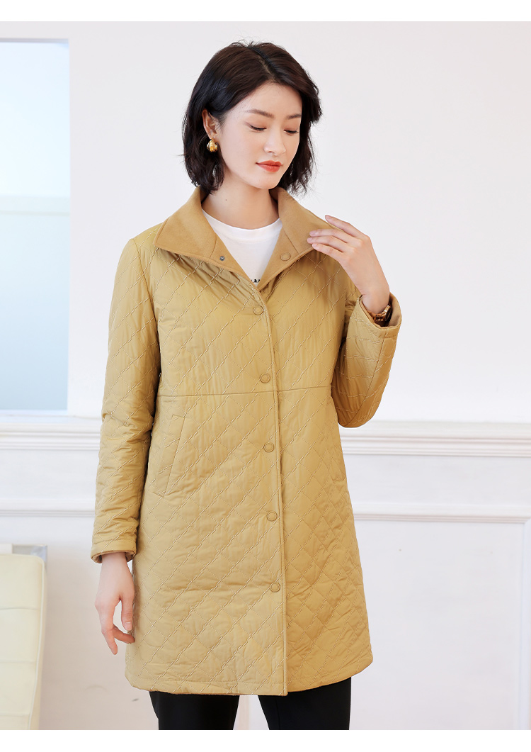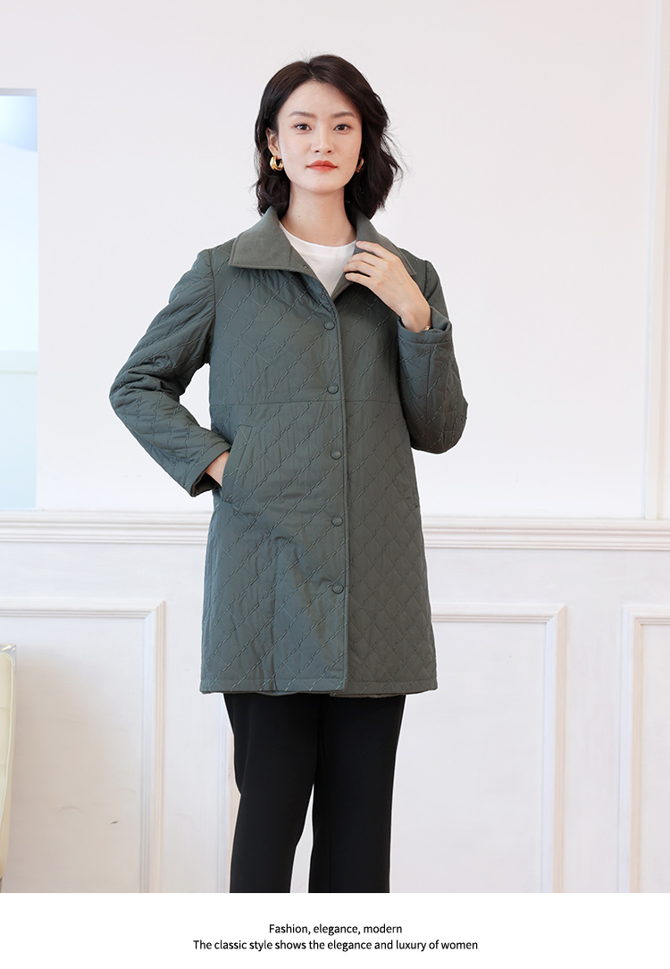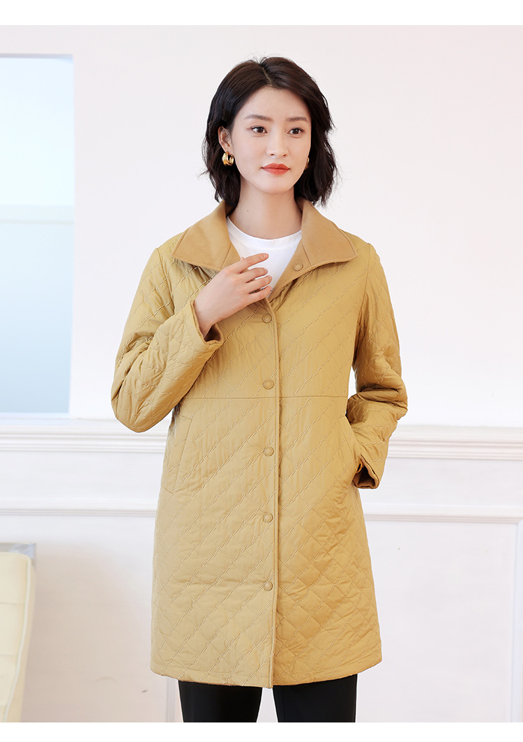 佐尔美秋冬新款 时尚双面穿菱形格羊毛双面呢棉服外套女E24SM02