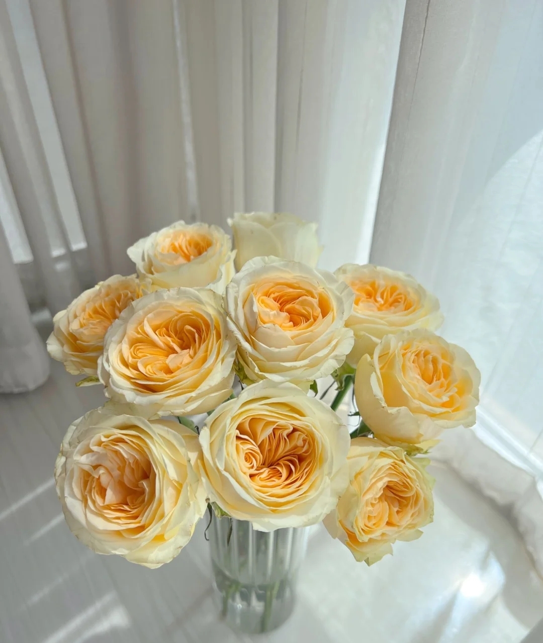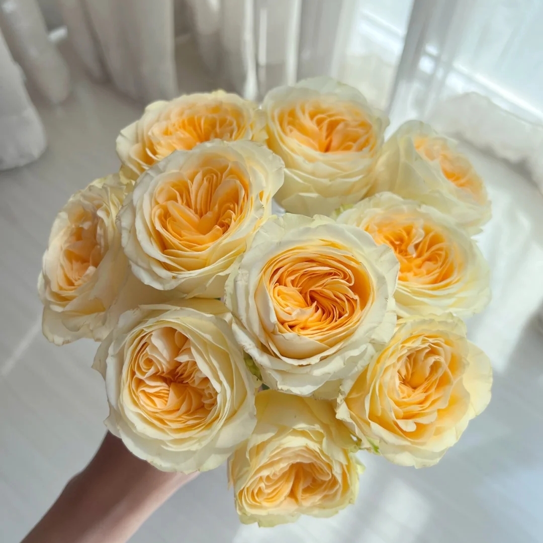 暖玉杯玫瑰又名奶油杯奶油杯,嫩黄色渐变的奥斯丁花型包子花。高端玫瑰