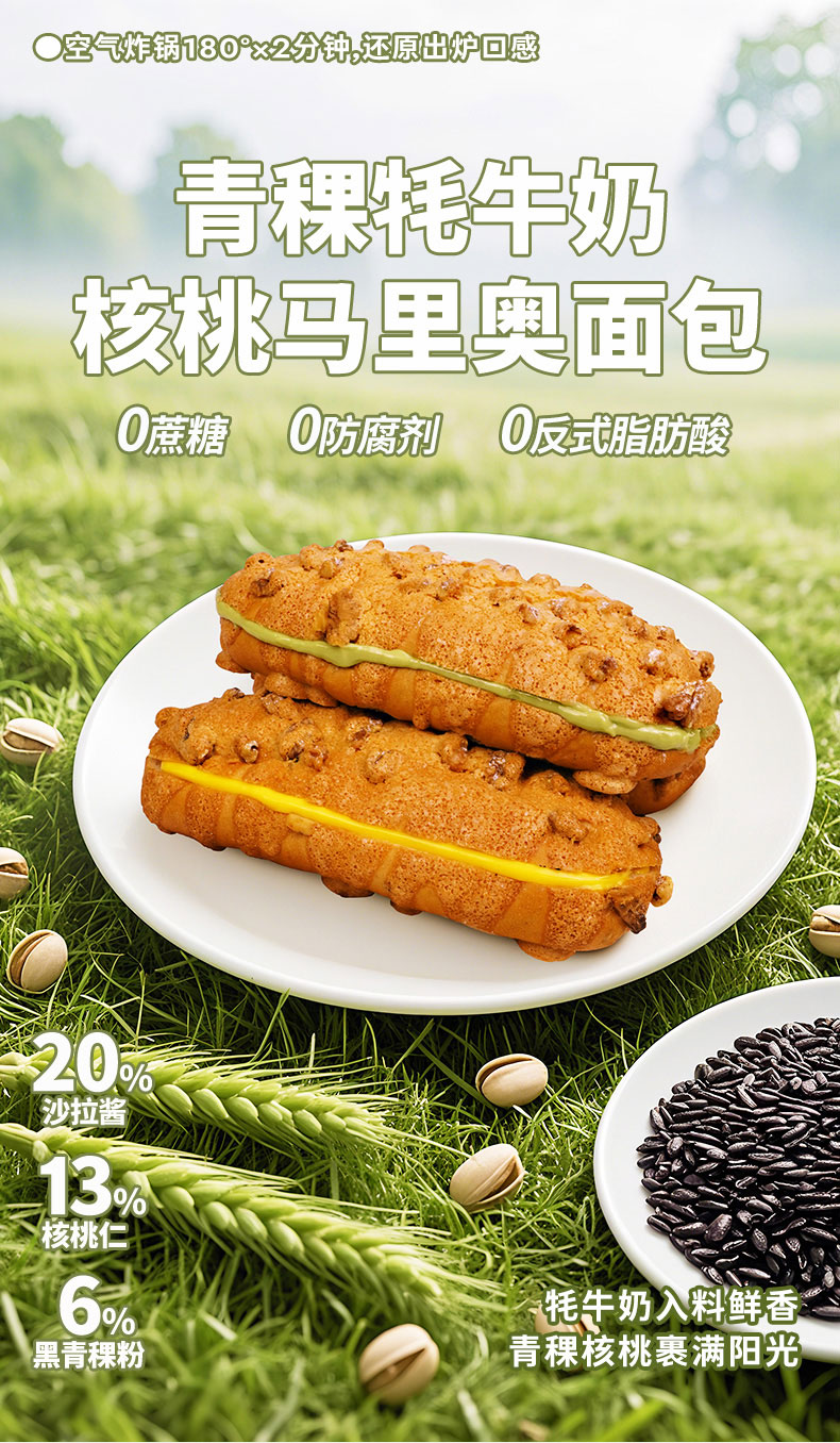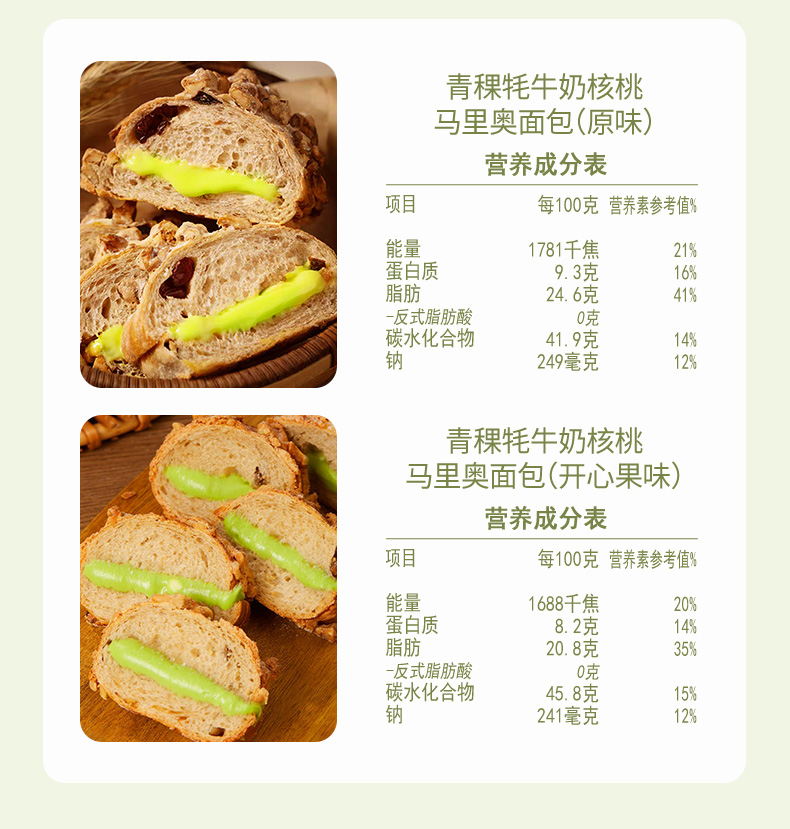 牦牛奶青稞核桃开心果坚果夹心欧包马里奥面包坚果儿童早餐代餐