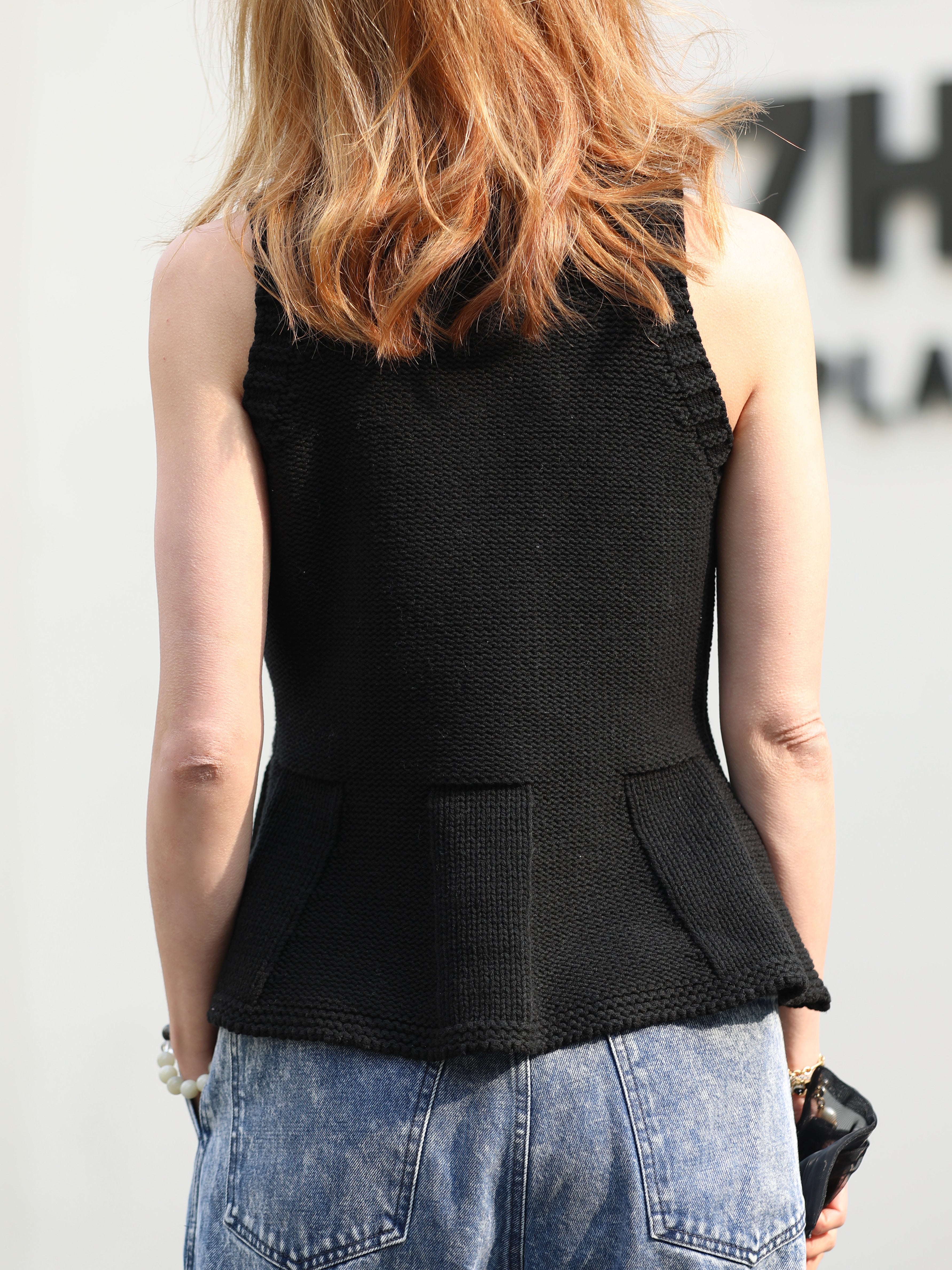 TYNVIE 荷叶边袋口装饰廓形西装-蓝色白点