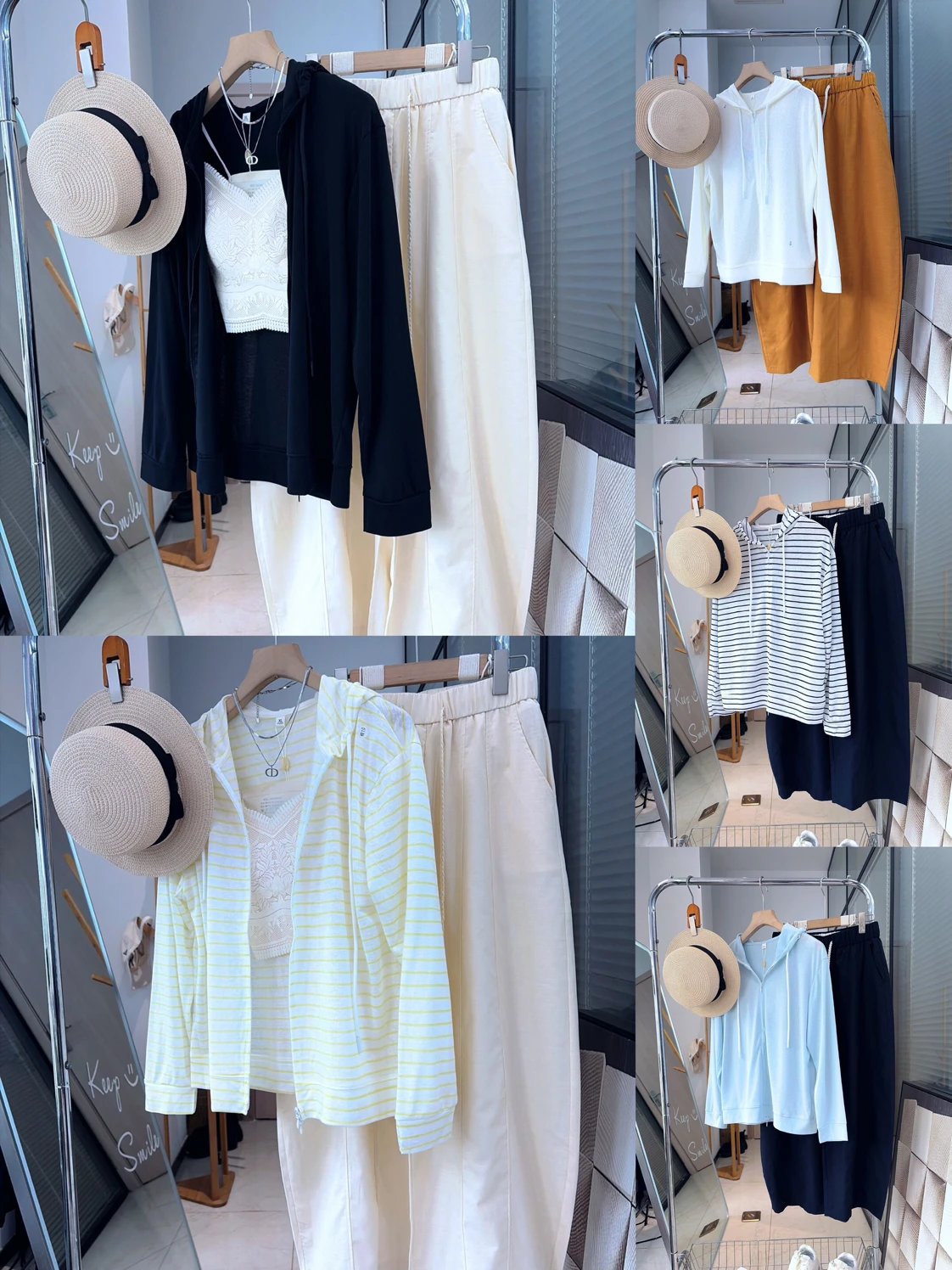 1️⃣上衣是分两个款的,纯色和条纹,面料有些区别但是款式是一样的!有青春活力的颜色也有日常百搭的颜色!版型也是不挑身材的!