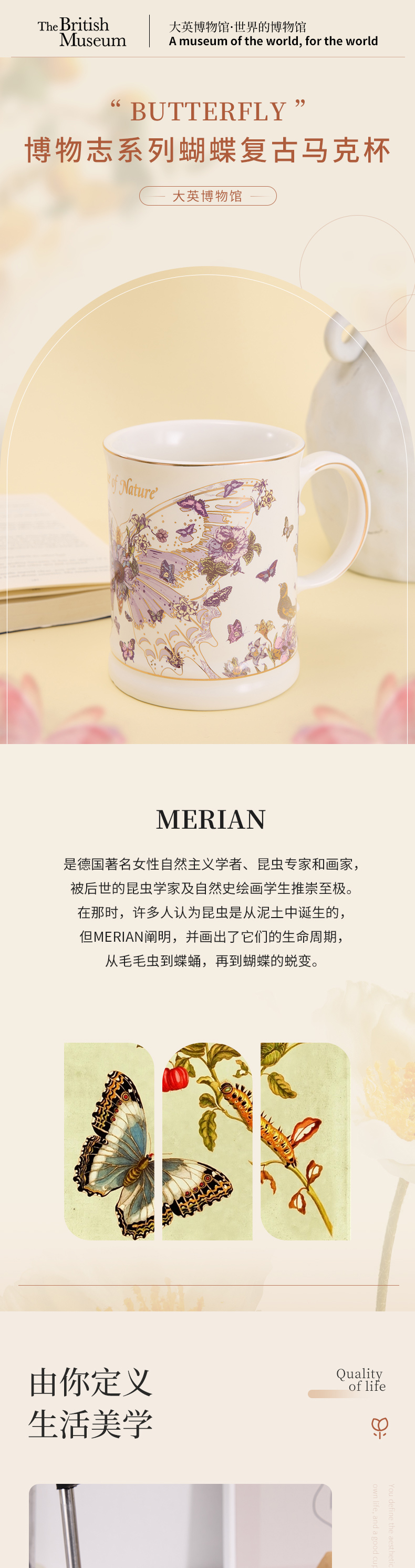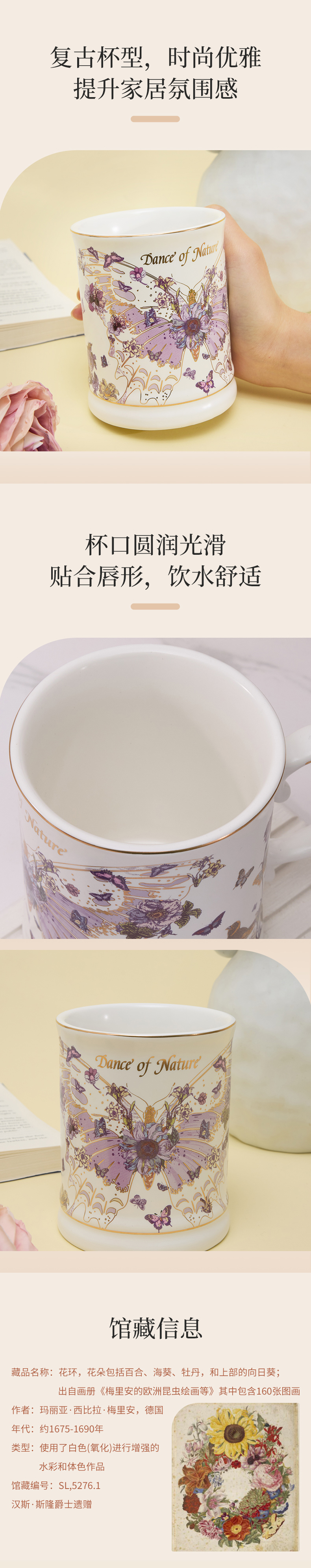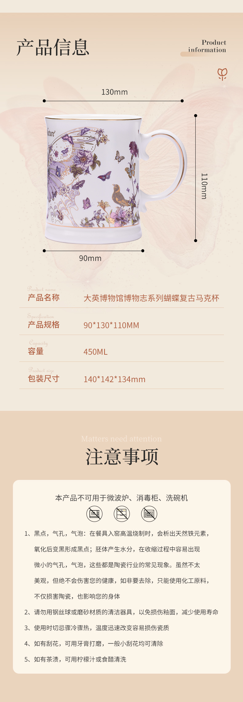 大英博物馆 博物志系列 蝴蝶 复古 陶瓷 马克杯 容量450ml