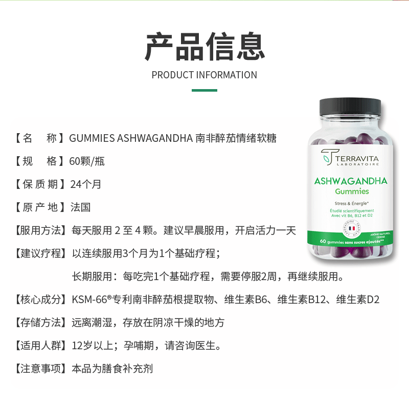 【暖白专属链接】法国TERRAVITA泰乐维塔南非醉茄 情绪软糖 降低皮质醇水平